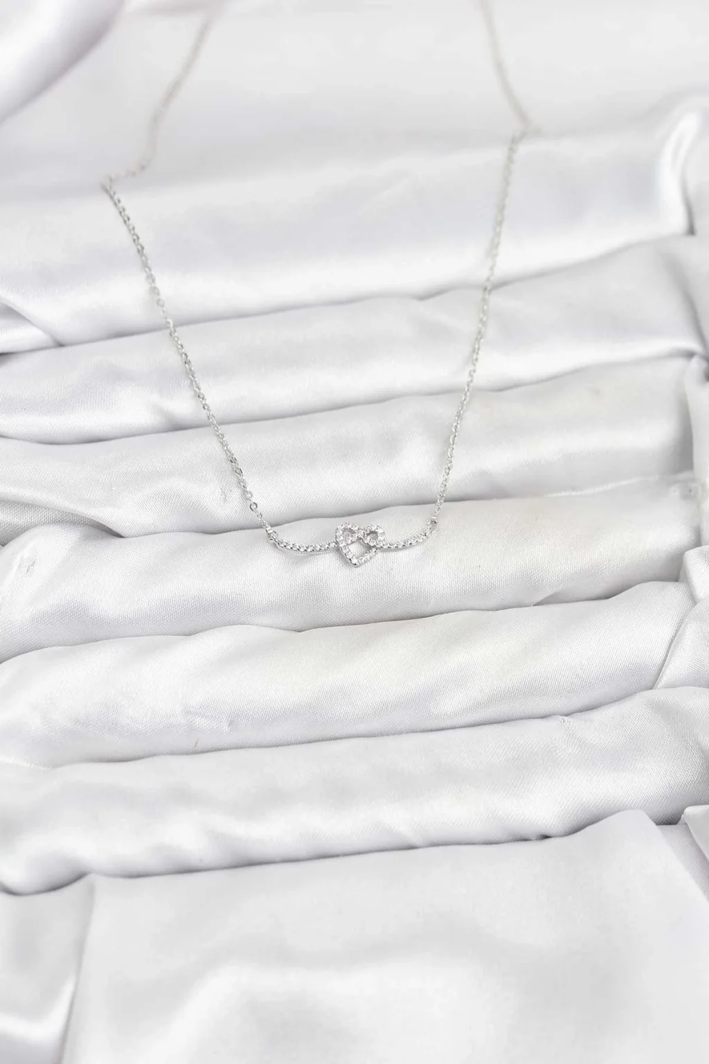 BUĞZ Pirinç Gümüş Renk Düğüm Kalp Model Kadın Kolye - Lisinya