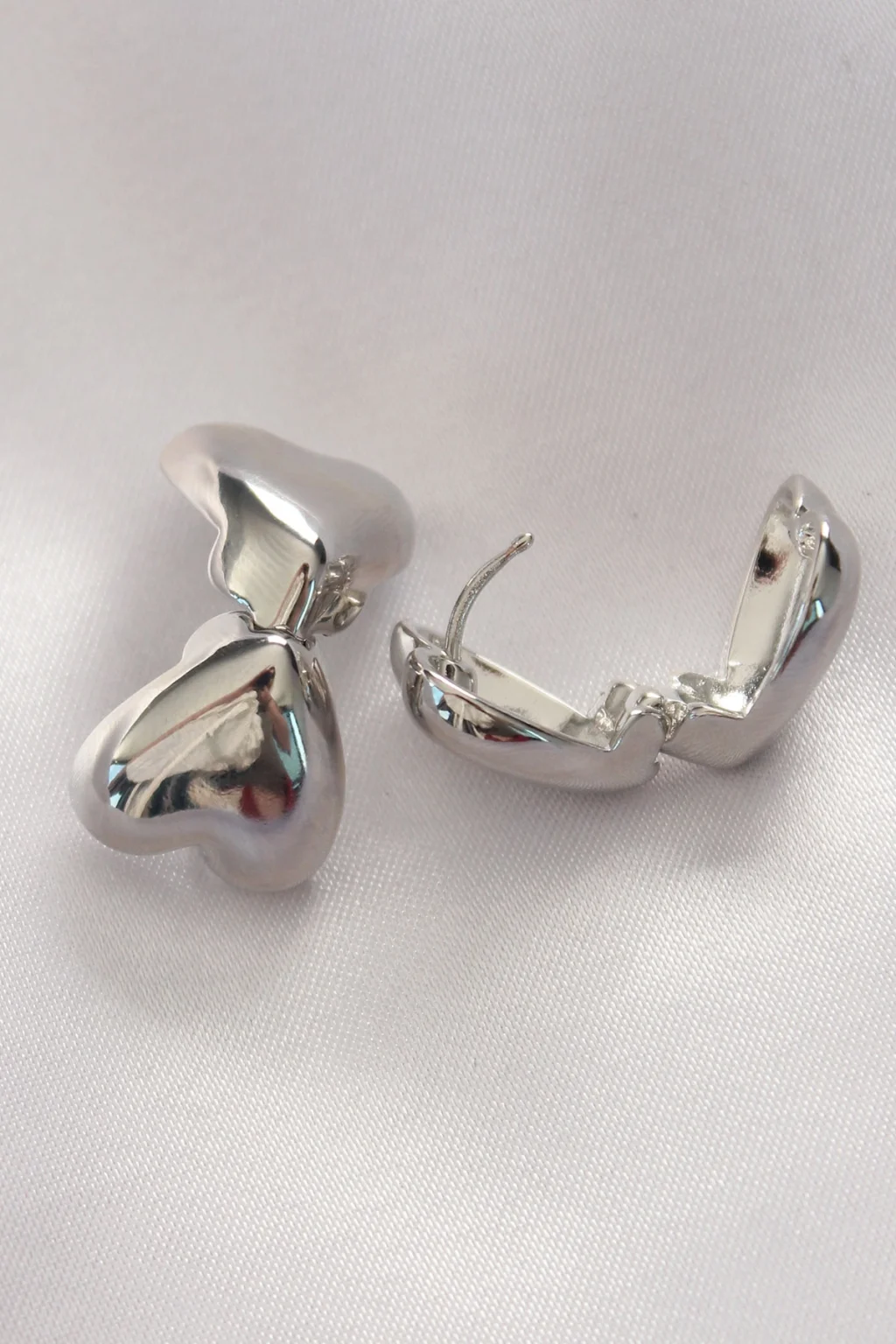 BUĞZ Pirinç Gümüş Renk Minimal Bombeli Kalp Küpe - Lisinya