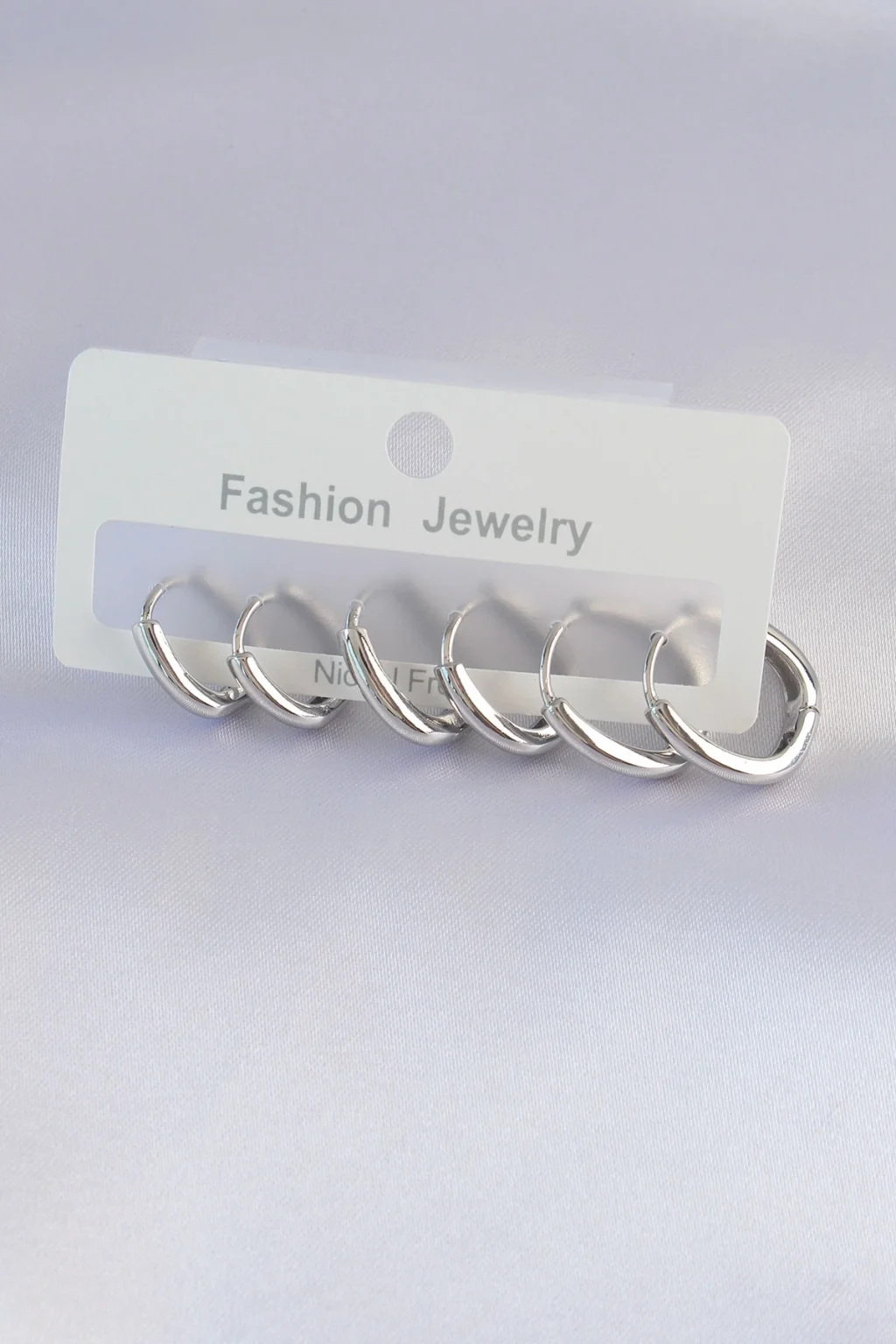 BUĞZ Pirinç Gümüş Renk Oval Küpe Seti - Lisinya