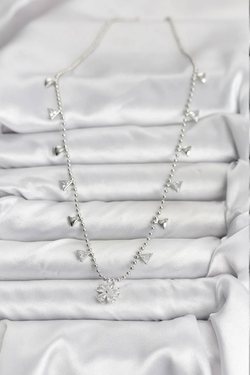 BUĞZ Pirinç Gümüş Renk Zirkon Taşlı Çiçek Model Kadın Kolye - Lisinya