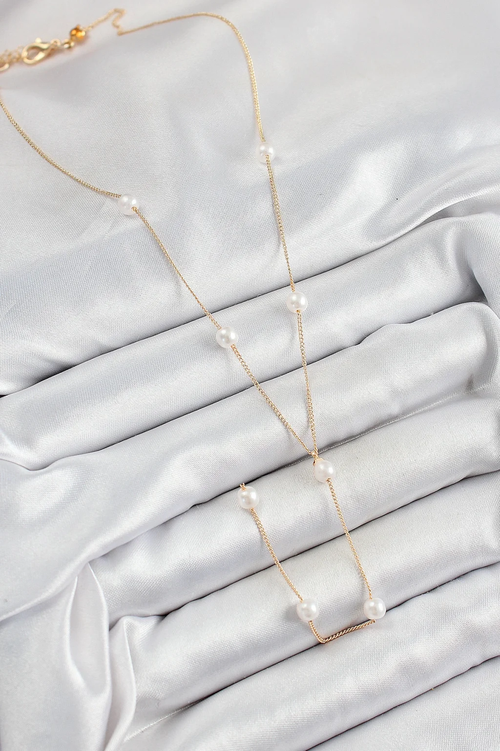 BUĞZ Pirinç İnci Figürlü Y Model Gold Renk Kadın Kolye - Lisinya