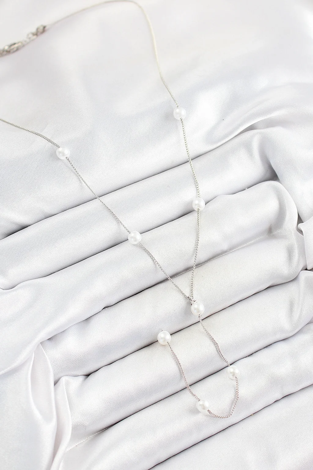 BUĞZ Pirinç İnci Figürlü Y Model Gümüş Renk Kadın Kolye - Lisinya