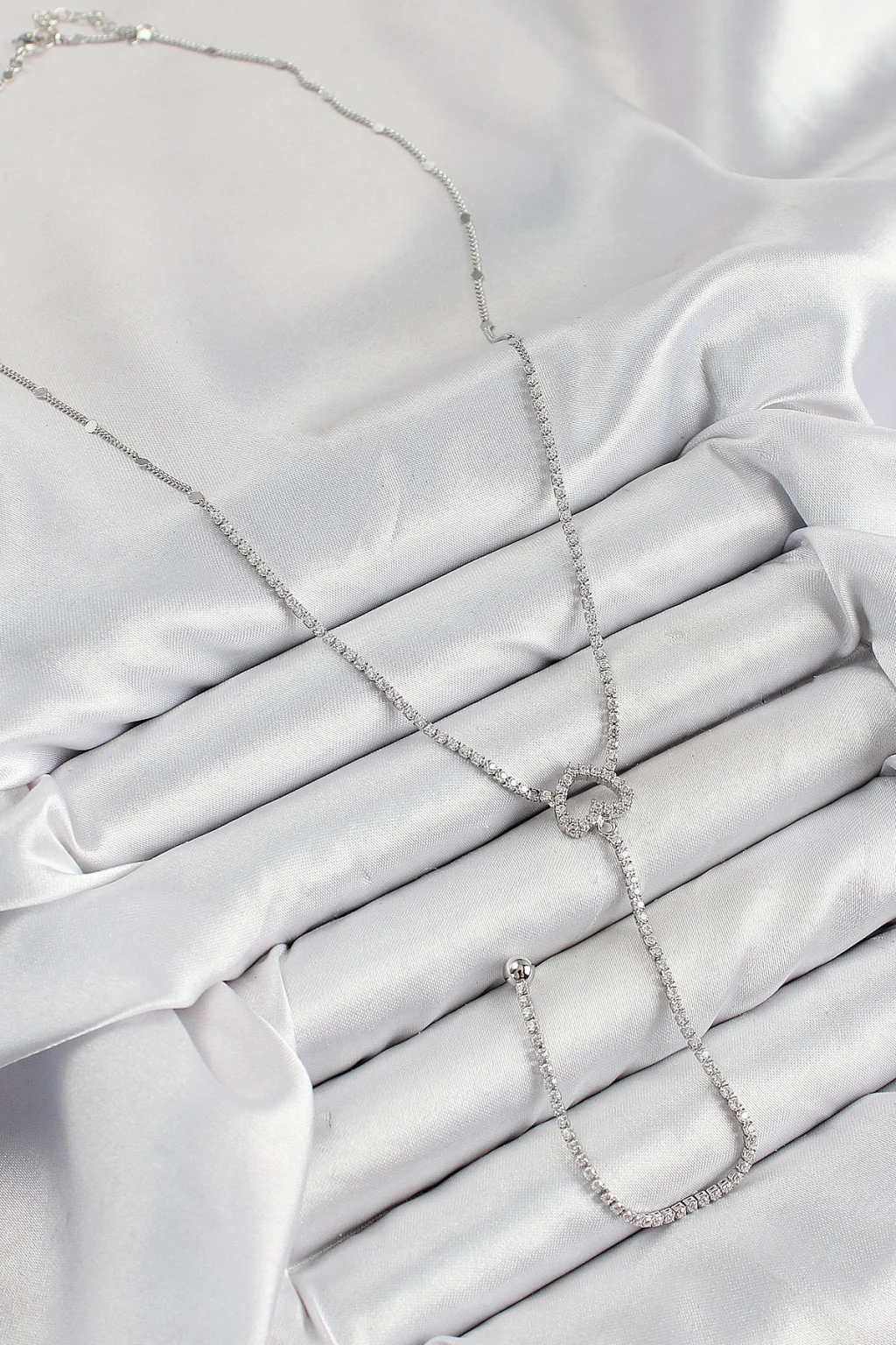 BUĞZ Pirinç Zirkon Taşlı Kalp Model Gümüş Renk Y Kolye - Lisinya