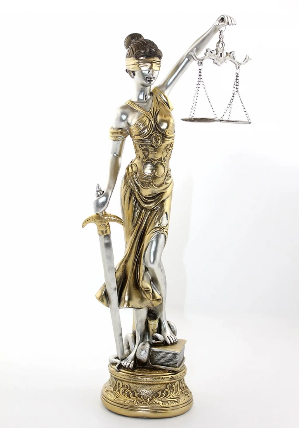 POLYESTER ADALET FİGÜRÜ MODEL 2Ürün ÖzellikleriPolyester Adalet Figürü Model 2, klasik adalet sembollerini modern bir şekilde tasvir eden zarif bir figürdür. Altın ve gümüş tonlarının birleşimiyle şık bir görünüm sunan bu figür, adaletin ve hakkın simgesi olarak evinizde ya da ofisinizde dikkat çekici bir dekorasyon ögesi oluşturur. Adaletin maskesi, kılıcı ve teraziyle tamamlanan figür, zarif detayları ve büyüleyici tasarımıyla estetik bir atmosfer yaratır.Paket İçeriği1 adet Polyester Adalet Figürü Model 2