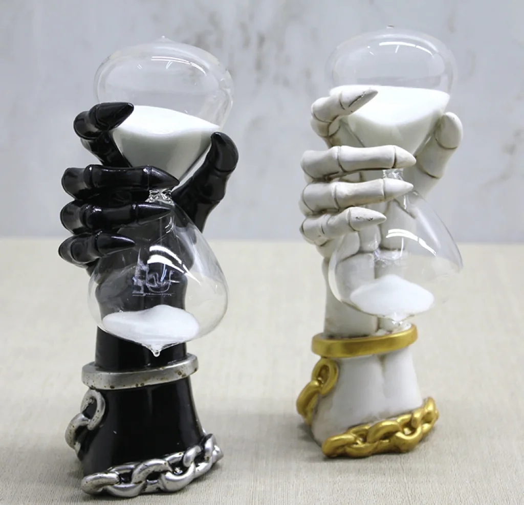 POLYESTER EL TASARIMLI KUM SAATİÜrün ÖzellikleriPolyester El Tasarımlı Kum Saati, dikkat çekici el figürü tasarımı ve modern görünümüyle dekoratif objeler arasında öne çıkan şık bir aksesuardır. 22x11 cm boyutundaki yapısı sayesinde hem masaüstünde hem de raflarda estetik bir duruş sergiler. Kum haznesinin zarif geçişi, zamanın akışını görsel bir deneyime dönüştürür. 1. sınıf polyester malzemeden üretilmiş olup dayanıklı ve uzun ömürlü bir kullanım sunar. Renk seçimi yapılamaz; görselde yer alan renklerden biri karışık olarak gönderilir.Paket İçeriği1 adet Polyester El Tasarımlı Kum Saati
