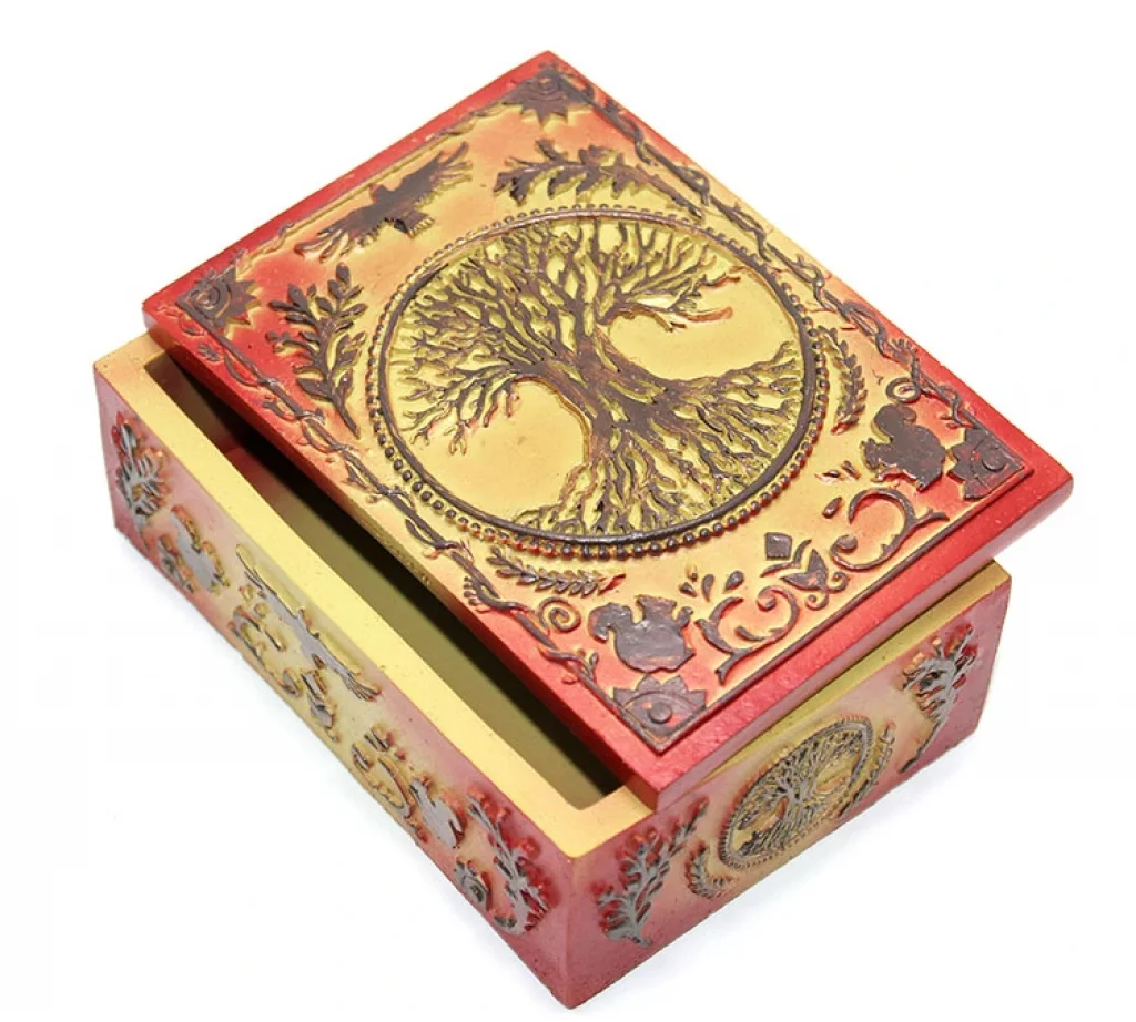 POLYESTER KUTUÜrün ÖzellikleriPolyester Kutu, mistik ve doğaya ilham veren tasarımı ile dikkat çeken özel bir saklama kutusudur. Kapağında kabartmalı hayat ağacı figürü yer almakta olup, detaylı işçiliği ile estetik bir görünüm sunar. Dayanıklı polyester malzemeden üretilmiş olup uzun ömürlü kullanım sağlar. Takılarınızı, küçük eşyalarınızı veya değerli objelerinizi güvenle saklamak için ideal bir üründür. Aynı zamanda dekoratif bir obje olarak da kullanılabilir ve mistik bir hava katmaktadır.Paket İçeriği1 Adet Polyester Kutu