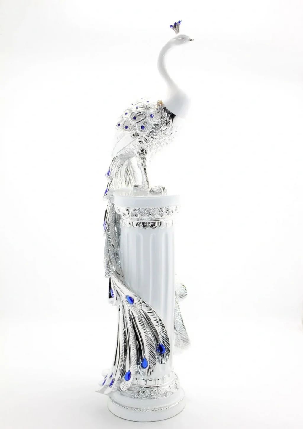 POLYESTER TAVUSKUŞU FİGÜRÜ MODEL 1Ürün ÖzellikleriPolyester Tavuskuşu Figürü Model 1, 70 cm boyutunda ve zarif bir tasarıma sahip, polyester malzemeden üretilmiş etkileyici bir dekoratif figürdür. Tavus kuşunun zarif tüyleri, mavi renkli taşlarla süslenmiş ve şık bir sütun üzerine yerleştirilmiştir. Modern ve zarif tasarımı ile her türlü dekorasyona uyum sağlar ve ev veya ofis alanlarınıza şıklık katacak estetik bir parça oluşturur.Paket İçeriği1 adet Polyester Tavuskuşu Figürü Model 1