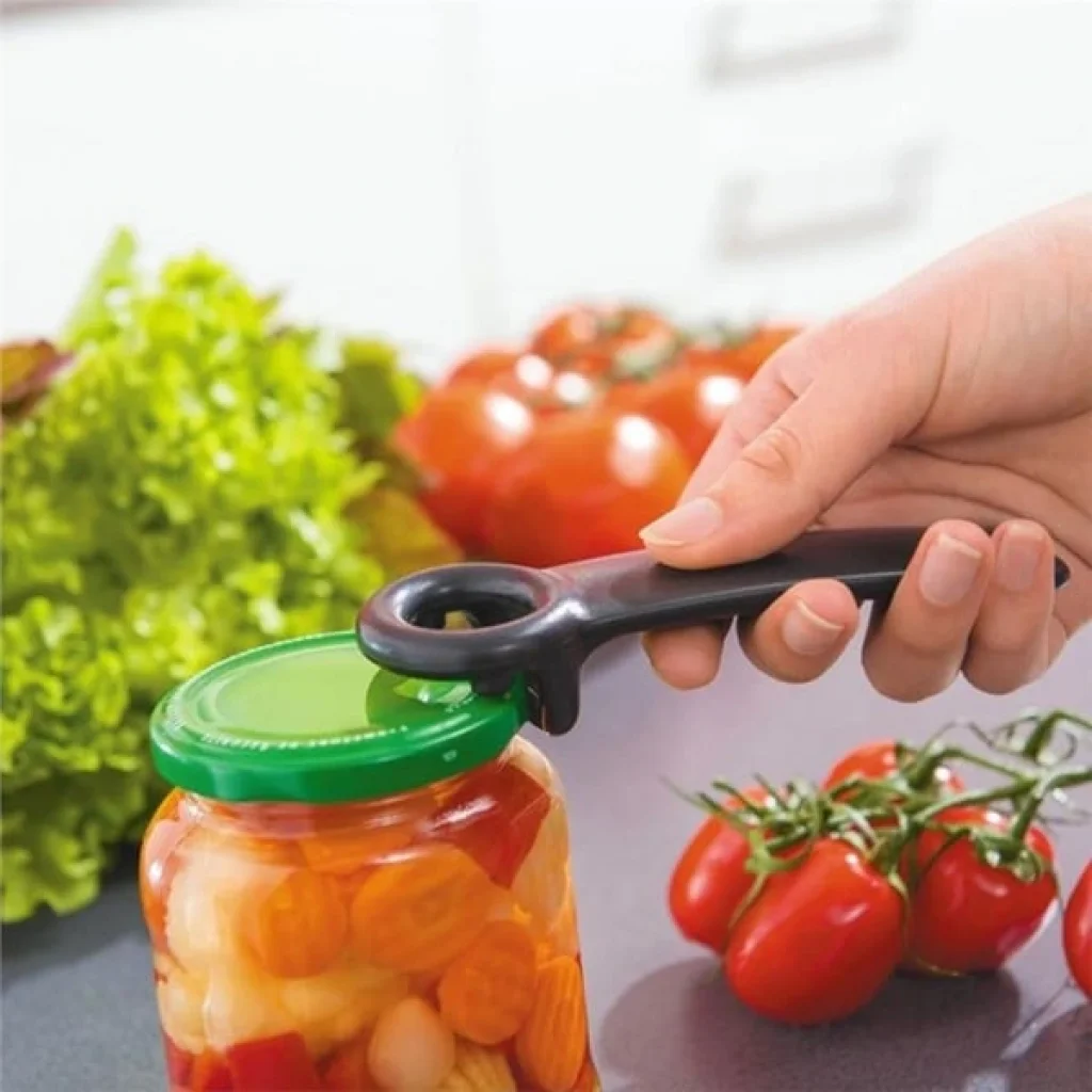 PRATİK ŞİŞE VE KAVANOZ KAPAĞI AÇACAĞIÜrün ÖzellikleriMutfakta kolaylık ve pratiklik arayanlar için tasarlanan Pratik Şişe ve Kavanoz Kapağı Açacağı, ergonomik yapısı ve şık tasarımıyla dikkat çeker. Renkli plastik sapı sayesinde kavrama kolaylığı sağlar ve açma işlemini zahmetsiz hale getirir. Dayanıklı metal kısmı ile kapaklara tam tutuş sağlar, küçük şişelerden büyük kavanozlara kadar geniş bir kullanım alanı sunar.Kompakt boyutu sayesinde çekmecelerde az yer kaplar, kolay taşınabilir yapısıyla kamp, piknik veya seyahatlerde de rahatlıkla kullanılabilir. Modern renk seçenekleriyle hem mutfak düzenine hem de estetiğine uyum sağlar. Uzun ömürlü plastik ve metal bileşimi sayesinde kırılma veya deformasyon riski olmadan yıllarca kullanılabilir.Her evin ihtiyacı olan bu pratik açacak, hem estetik hem de işlevsellik açısından mutfakta fark yaratır.Paket İçeriği1 adet pratik şişe ve kavanoz kapağı açacağı