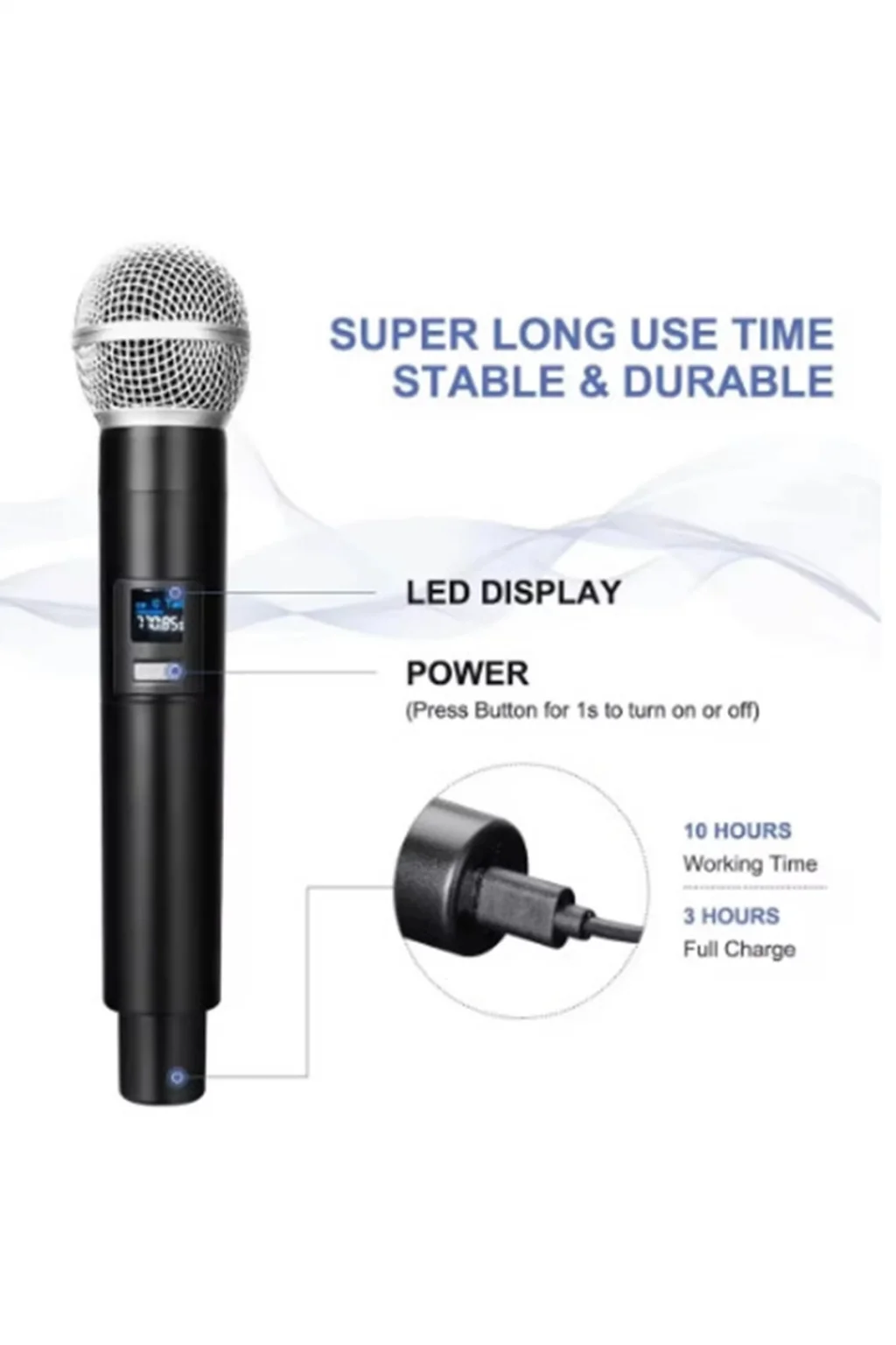 Profesyonel Çiftli Kablosuz Mikrofon Seti  Karaoke Şarj Edilebilir