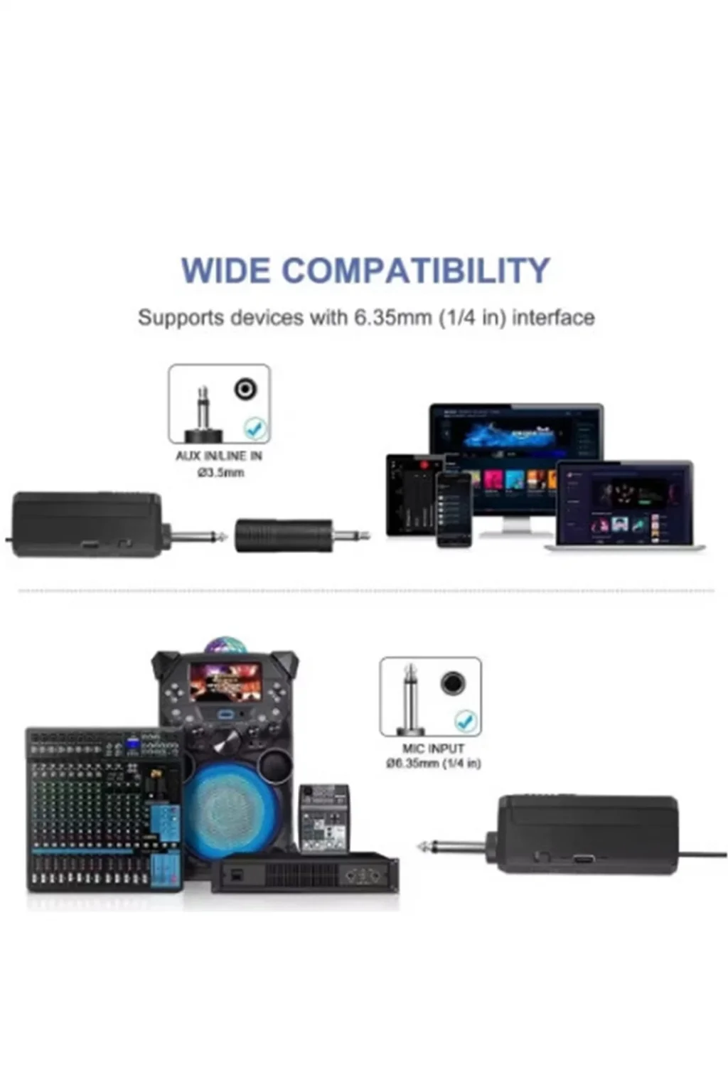 ●Tak ve Çalıştır: Alıcıyı MIC jakına takmanız yeterli alıcı frekansını mikrofonla otomatik olarak senkronize edecektir, piller,kabloları ve diğer aksesuarlar e dahildir ve teslim aldığınızda kullanıma hazırdır.