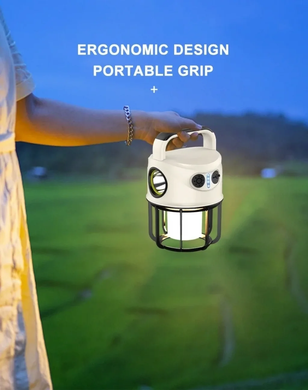 LİTYUM BATARYALI, POWERBANK ÖZELLİKLİ, ŞARJ GÖSTERGELİ, 3 FONKSİYONLU, SARI VE BEYAZ IŞIK  YANABİLEN KAMP LAMBASI