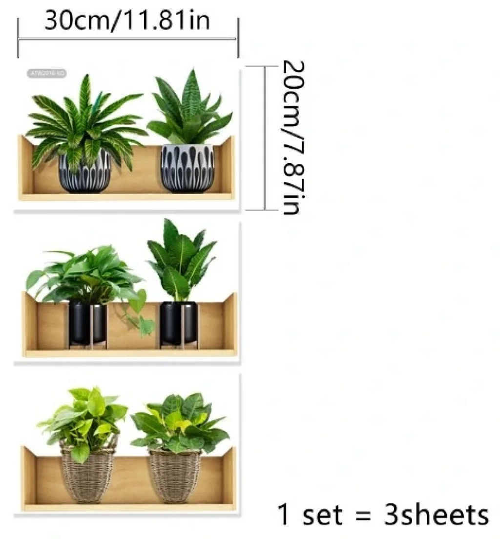 BUĞZ Raflı Bitki Tasarımlı Yapışkanlı Sticker 20*30 cm 3lü Set