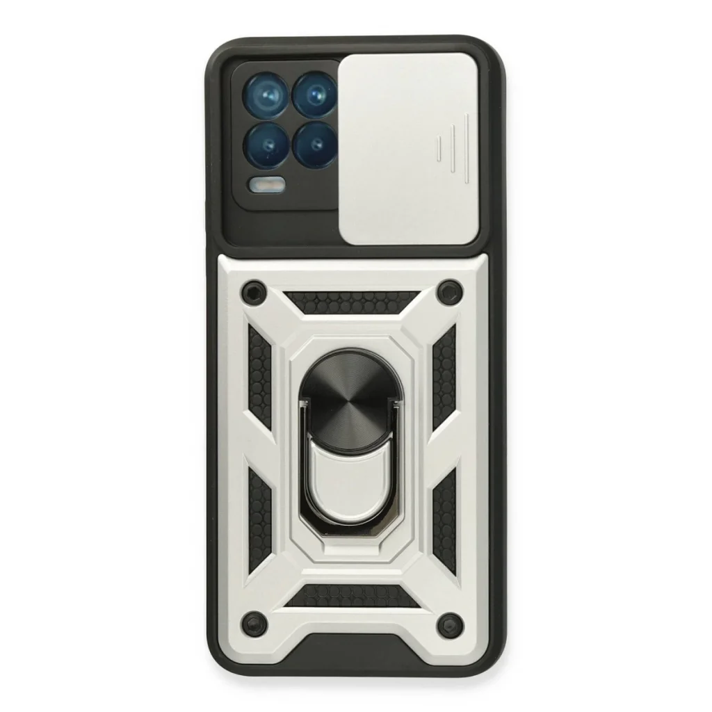 Realme 8 Kılıf Pars Lens Yüzüklü Silikon - Gümüş