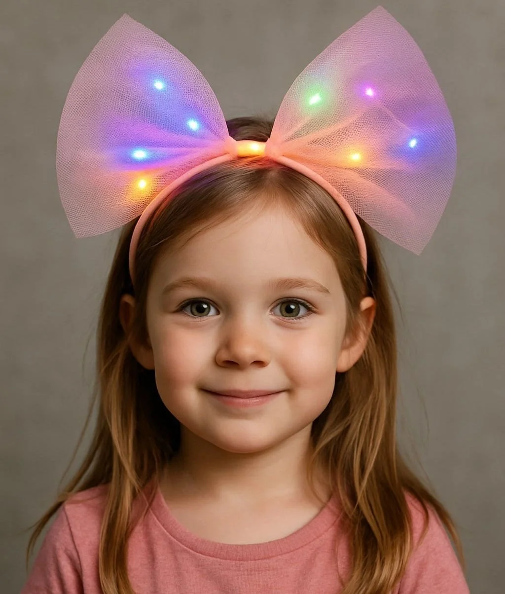BUĞZ Rengarenk Led Işıklı Fiyonk Şekilli Tül Parti Tacı Pembe Renk 25x25 cm