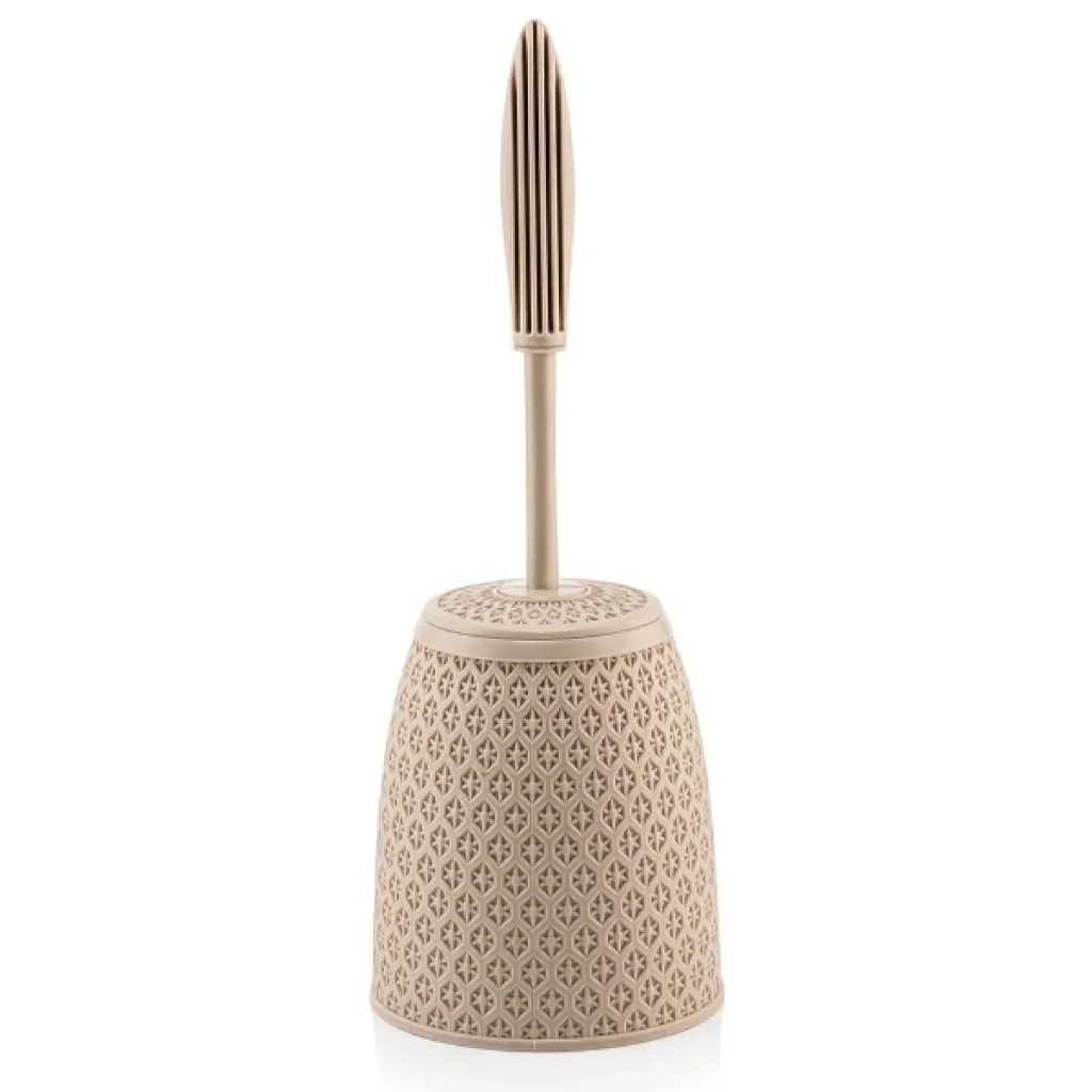 SAFİR DESENLİ TUVALET FIRÇASIÜrün ÖzellikleriSafir Desenli Tuvalet Fırçası, banyo dekorasyonunuza estetik bir dokunuş katarken hijyeni en şık haliyle sunar. Gövdesi üzerindeki zarif ve detaylı safir desen işlemeleri, sıradan banyo aksesuarlarından ayrılarak mekanınıza lüks bir görünüm kazandırır. Ürünün fırça sapı ile bütünleşik koruyucu kapak tasarımı, kullanım sonrasında fırçanın kova içinde tamamen kapalı kalmasını sağlayarak hem kötü kokuların yayılmasını önler hem de görsel bir bütünlük sergiler. Yüksek kaliteli, sağlığa uygun ve dayanıklı plastik materyalden üretilen bu modern tuvalet fırçası, neme ve suya karşı dirençli yapısıyla uzun ömürlü kullanım için idealdir. Ergonomik sap tasarımı konforlu bir temizlik imkanı sunarken, pürüzsüz iç ve dış yüzeyi sayesinde kova kısmı zahmetsizce temizlenebilir. Hem ev hem de profesyonel mekanların banyolarına uyum sağlayan bu dekoratif temizlik ürünü, kompakt formuyla alandan tasarruf ederken şıklığından ödün vermez.Ürün Teknik ÖzellikleriÖzellikAçıklamaÜrün AdıSafir Desenli Tuvalet FırçasıRenkBej / Vizon TonlarıMalzemeYüksek Kaliteli ve Dayanıklı PlastikTasarımSafir Desenli Dış Gövde ve Kapaklı Sap SistemiKullanım AlanıBanyo ve Tuvalet HijyeniFonksiyonKoku ve Görüntü Kirliliğini Önleyen Kapalı SistemTemizlikYıkanabilir ve Kolay Silinebilir YüzeyPaket İçeriği1 Adet Safir Desenli Tuvalet Fırçası