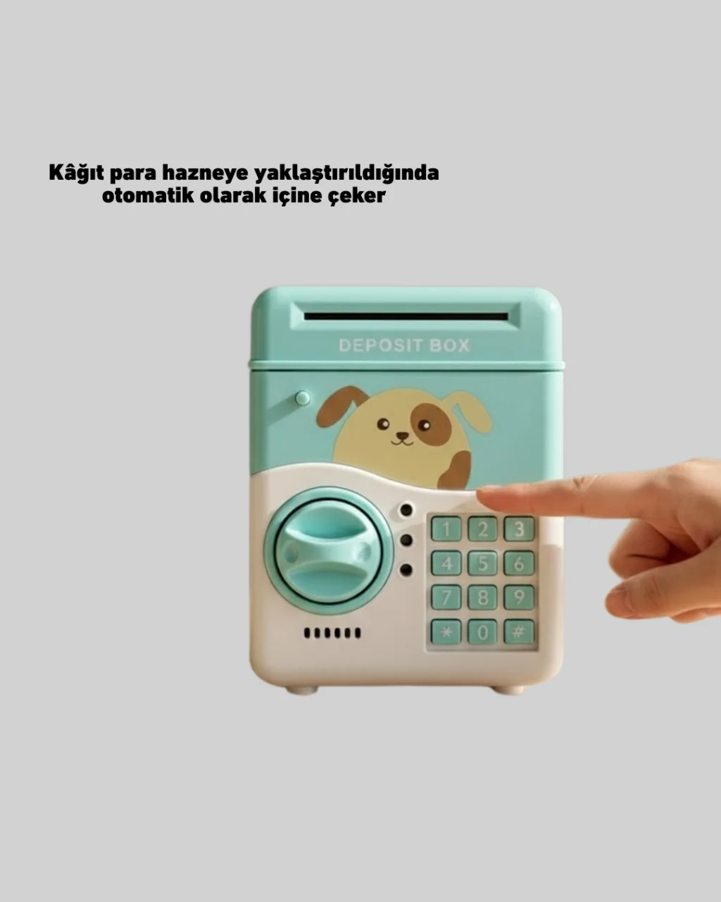 Bu su yeşili ATM kasa tasarımlı elektronik kumbara, hem eğitici hem de dekoratif bir üründür. Kişisel şifre sistemi ile güvenli kullanım sunar.Otomatik para girişi, ışık ve ses efektleriyle birleşerek çocuklar için keyifli bir deneyim oluşturur. Doğum günü, bayram ve karne hediyesi olarak mükemmel bir seçenektir.Ürün Markası: Lisinya