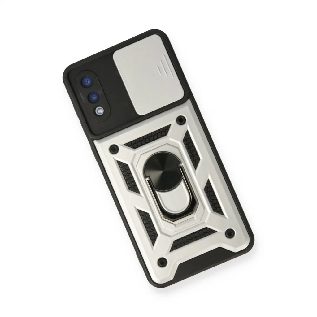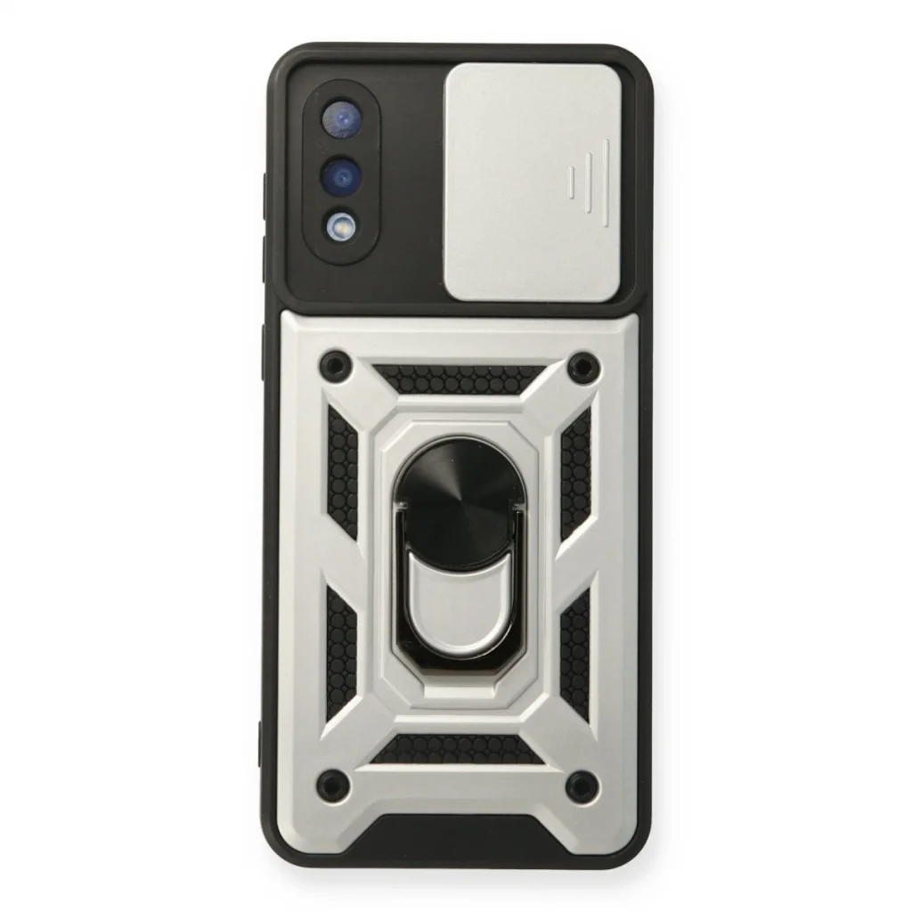 Samsung Galaxy A02 Kılıf Pars Lens Yüzüklü Silikon - Gümüş
