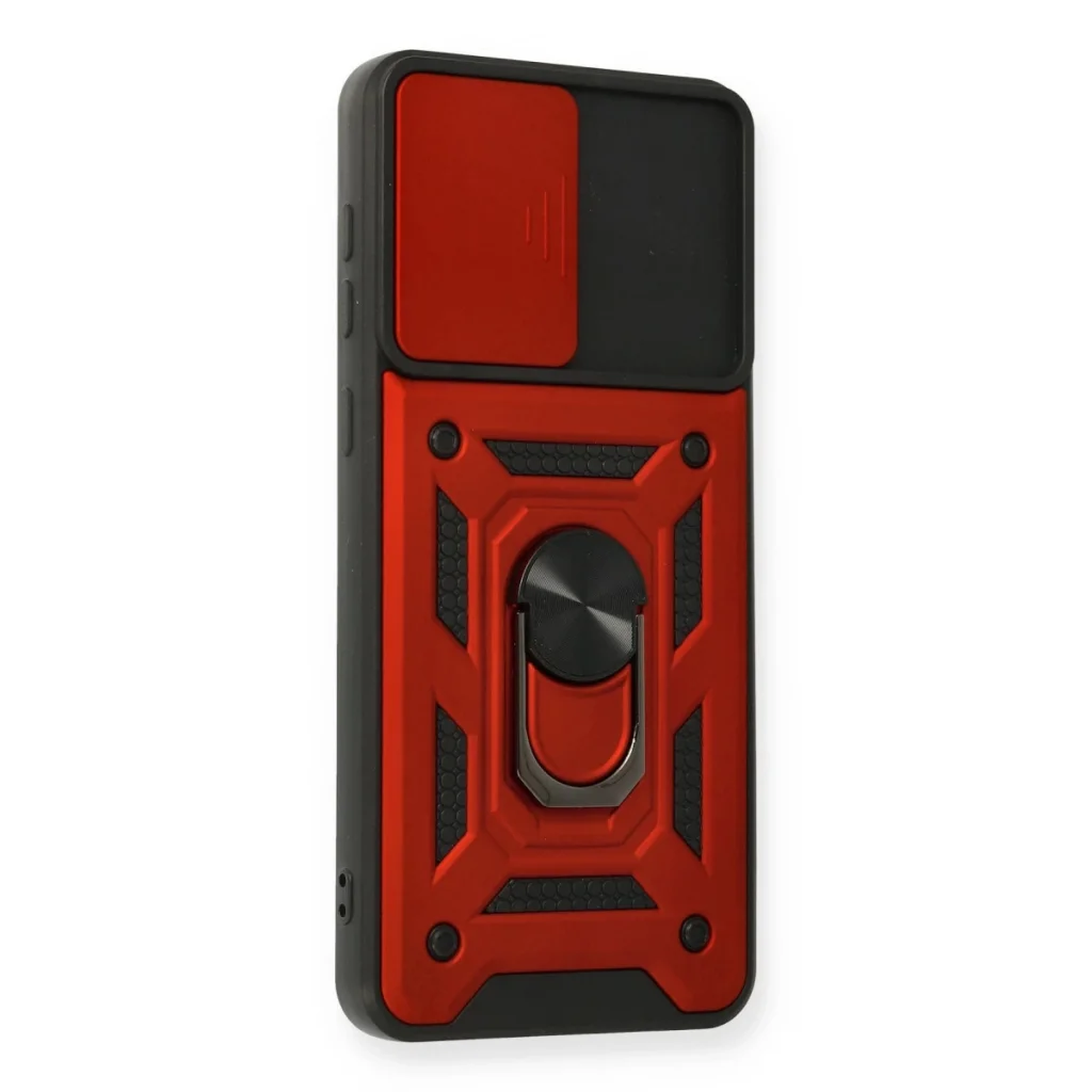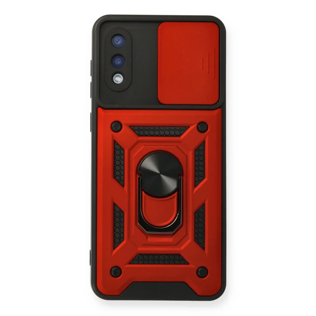 Samsung Galaxy A02 Kılıf Pars Lens Yüzüklü Silikon - Kırmızı