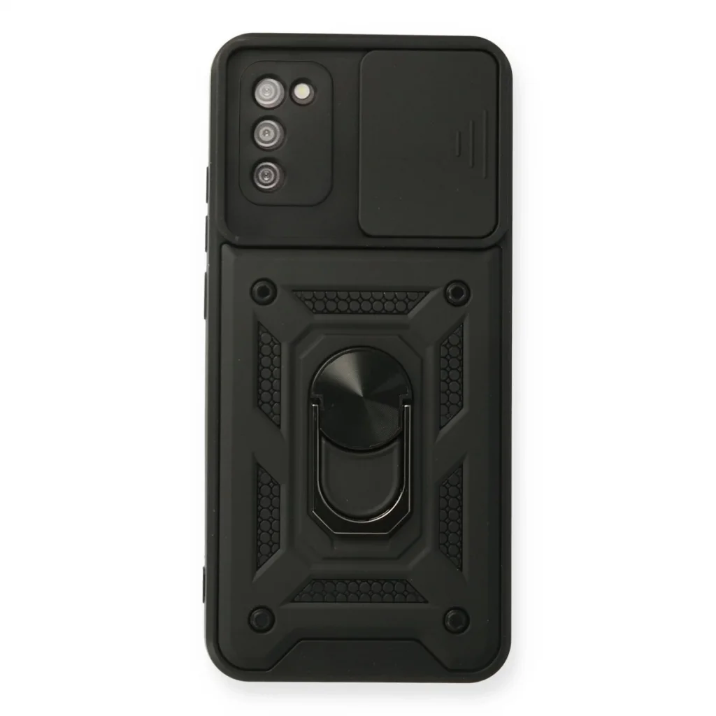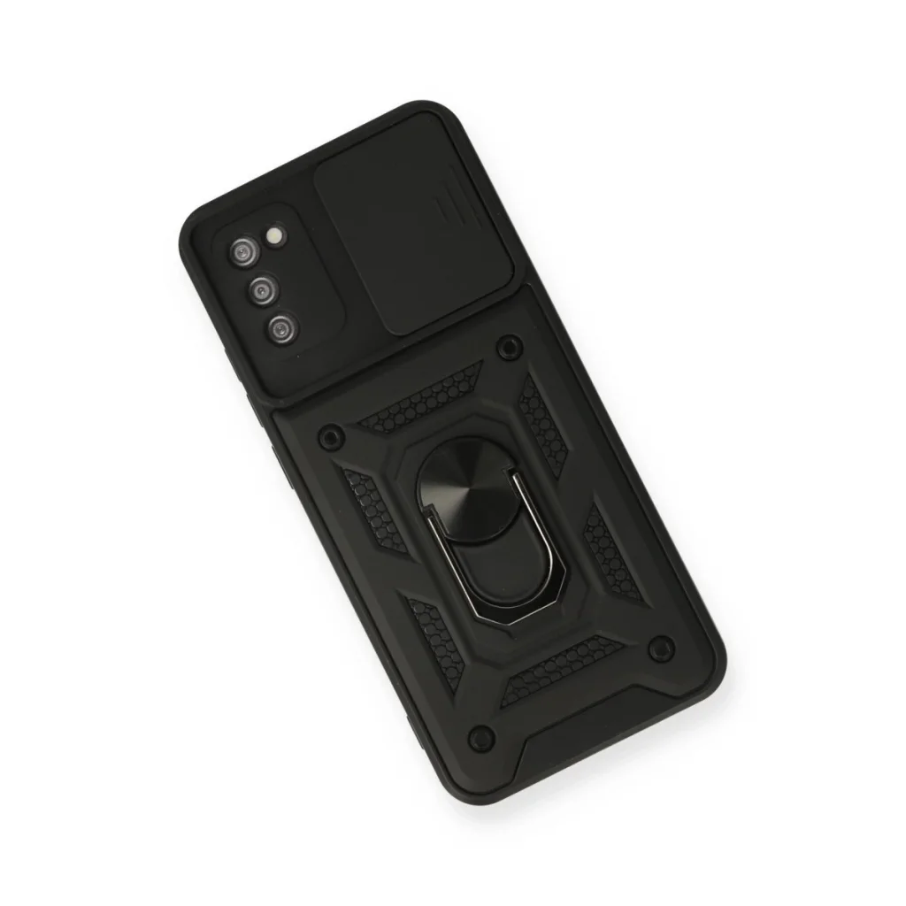 Samsung Galaxy A03s Kılıf Pars Lens Yüzüklü Silikon - Siyah