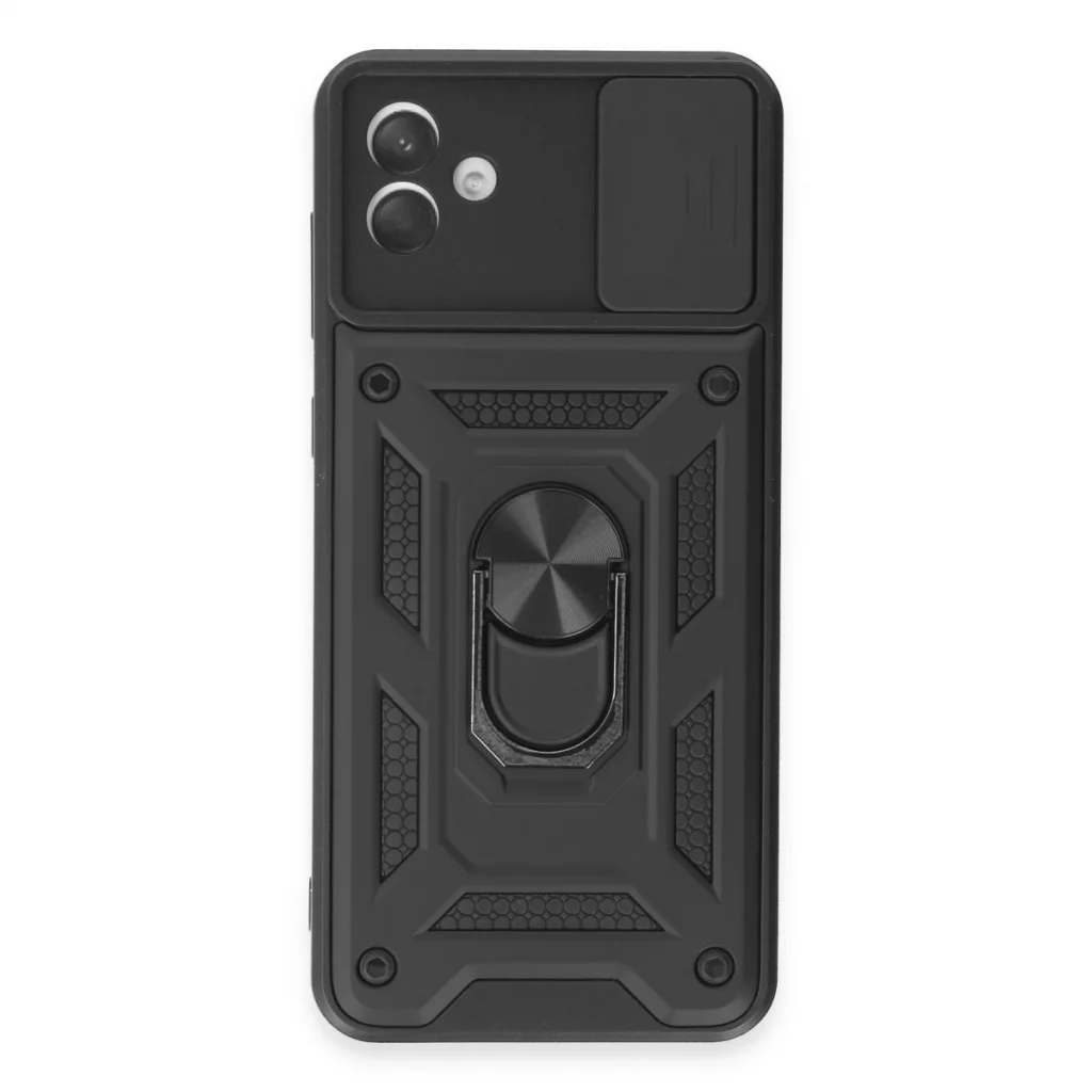 Samsung Galaxy A04e Kılıf Pars Lens Yüzüklü Silikon - Siyah