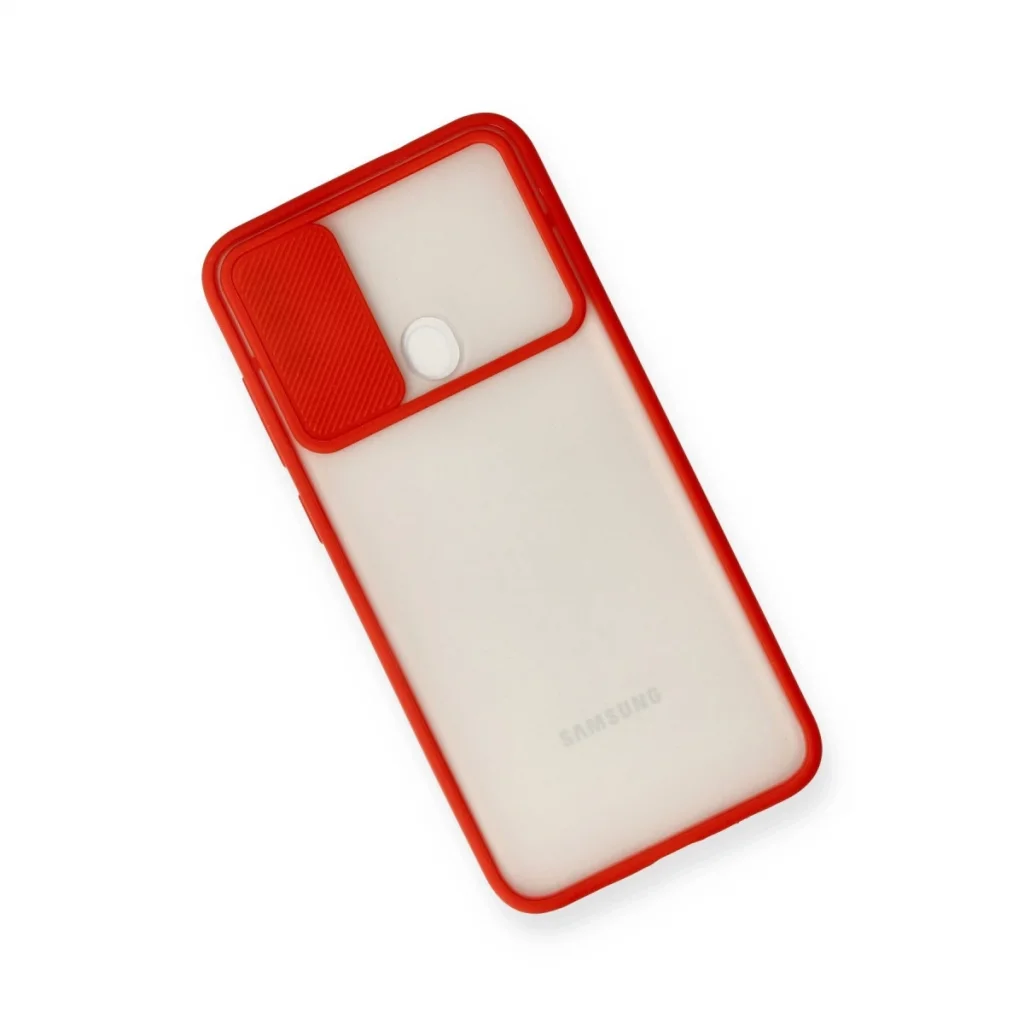 BUĞZ Samsung Galaxy A11 Kılıf Palm Buzlu Kamera Sürgülü Silikon - Kırmızı