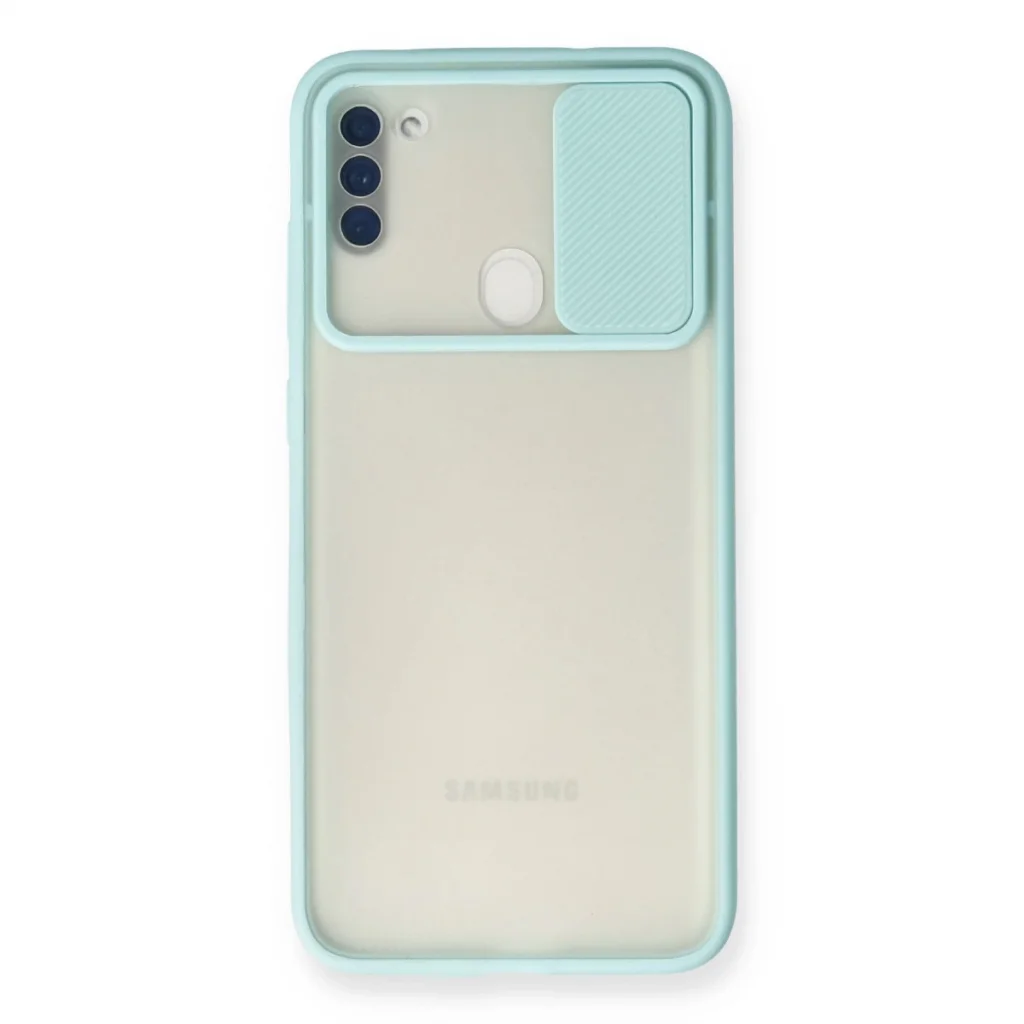 BUĞZ Samsung Galaxy A11 Kılıf Palm Buzlu Kamera Sürgülü Silikon - Turkuaz