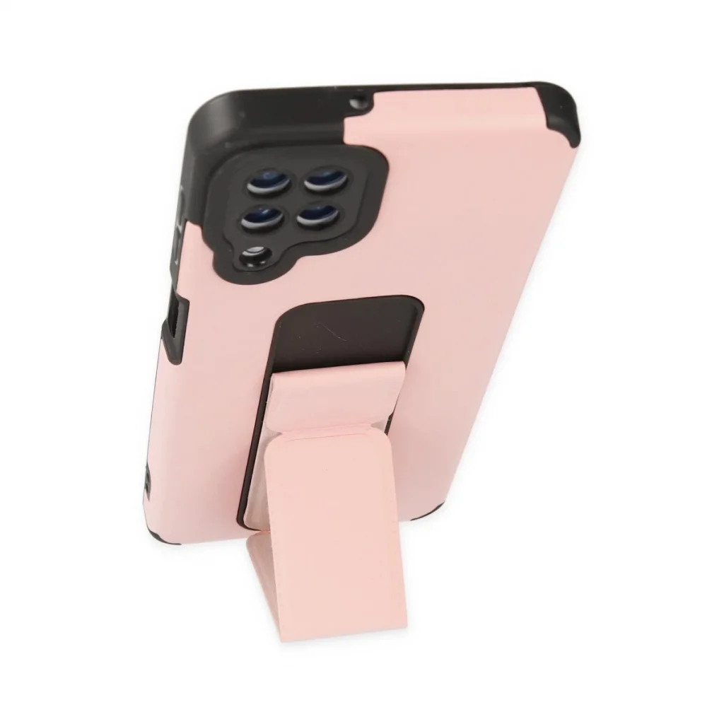 Samsung Galaxy A22 Kılıf Mega Standlı Silikon - Pudra