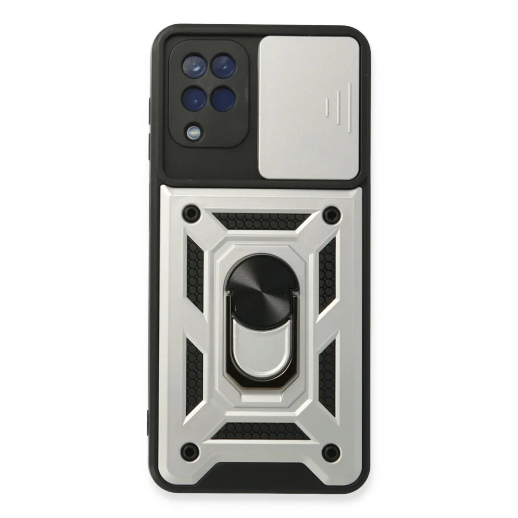 Samsung Galaxy A22 Kılıf Pars Lens Yüzüklü Silikon - Gümüş