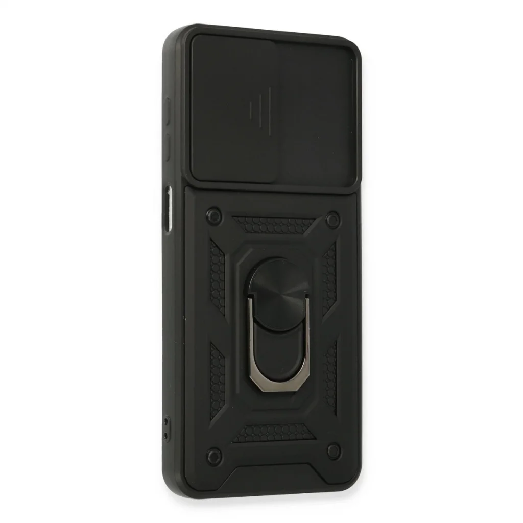Samsung Galaxy A22 Kılıf Pars Lens Yüzüklü Silikon - Siyah