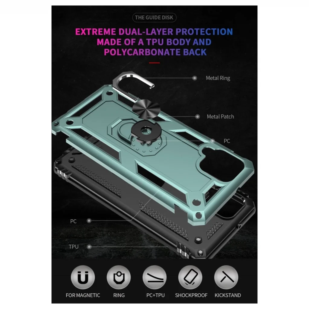 Samsung Galaxy A22 Kılıf Sofya Yüzüklü Silikon Kapak - Yeşil