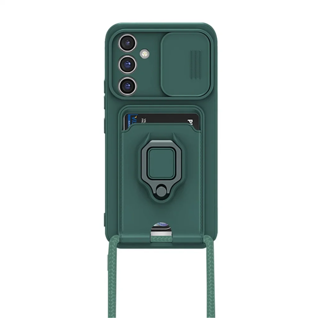 Samsung Galaxy A25 5g Kılıf Zuma Kartvizitli Yüzüklü Silikon - Yeşil