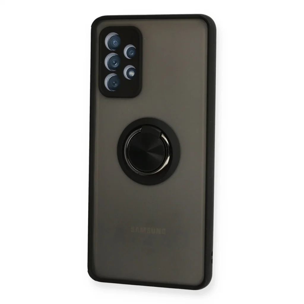 Samsung Galaxy A72 Kılıf Montreal Yüzüklü Silikon Kapak - Siyah