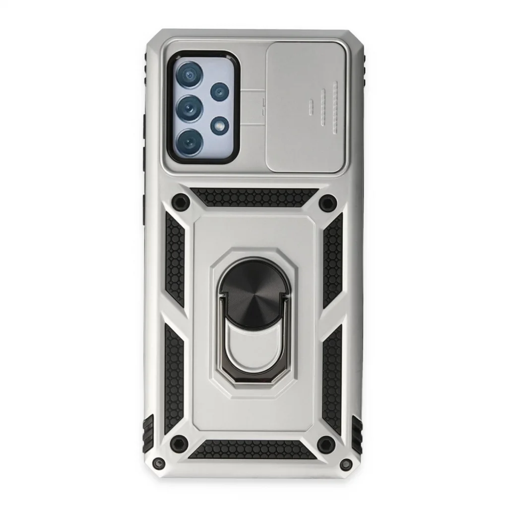 Samsung Galaxy A72 Kılıf Pars Lens Yüzüklü Silikon - Gümüş