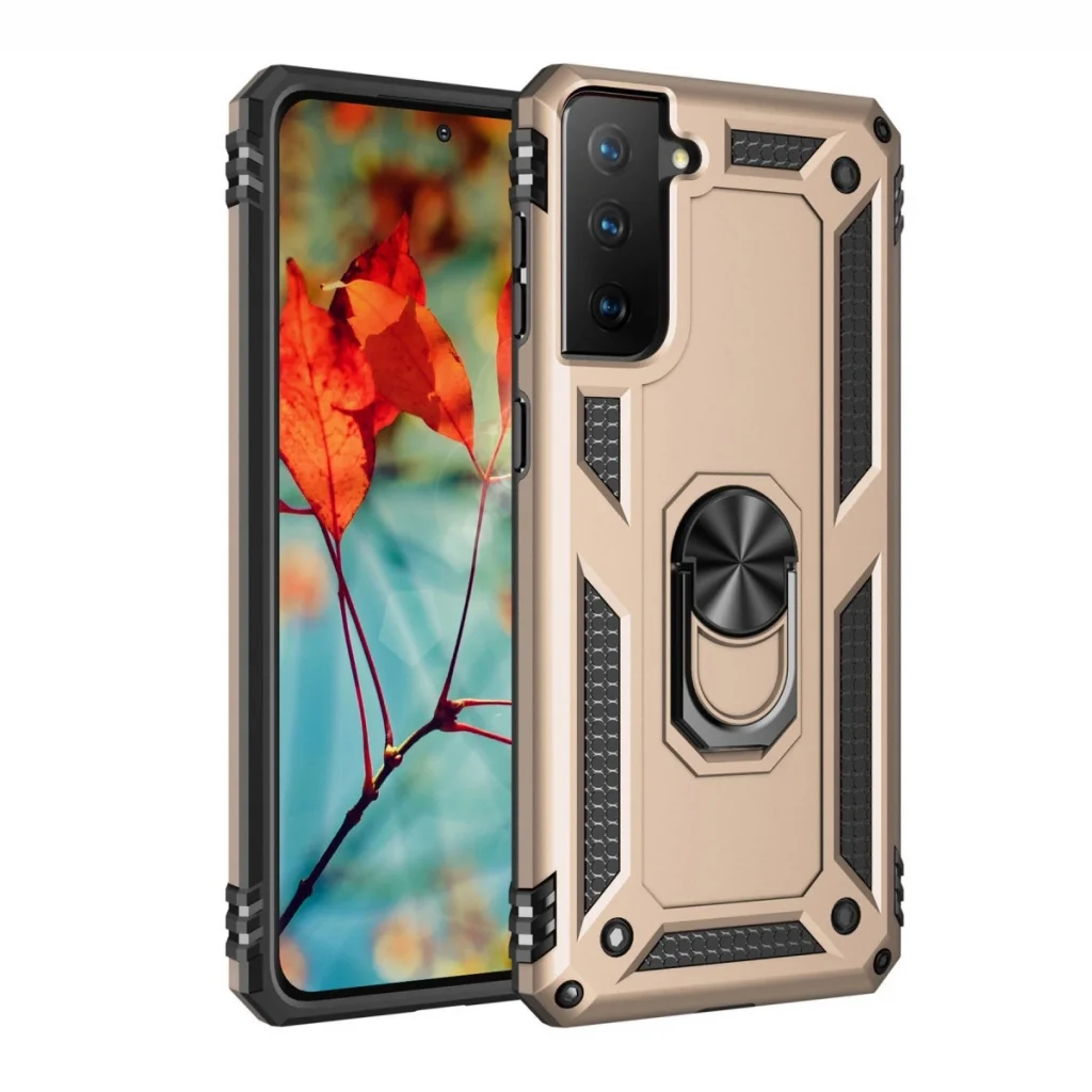 BUĞZ Samsung Galaxy S21 Kılıf Sofya Yüzüklü Silikon Kapak - Gold