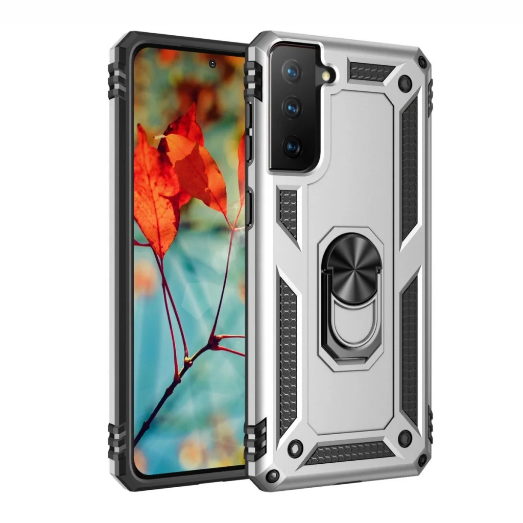 Samsung Galaxy S21 Kılıf Sofya Yüzüklü Silikon Kapak - Gümüş