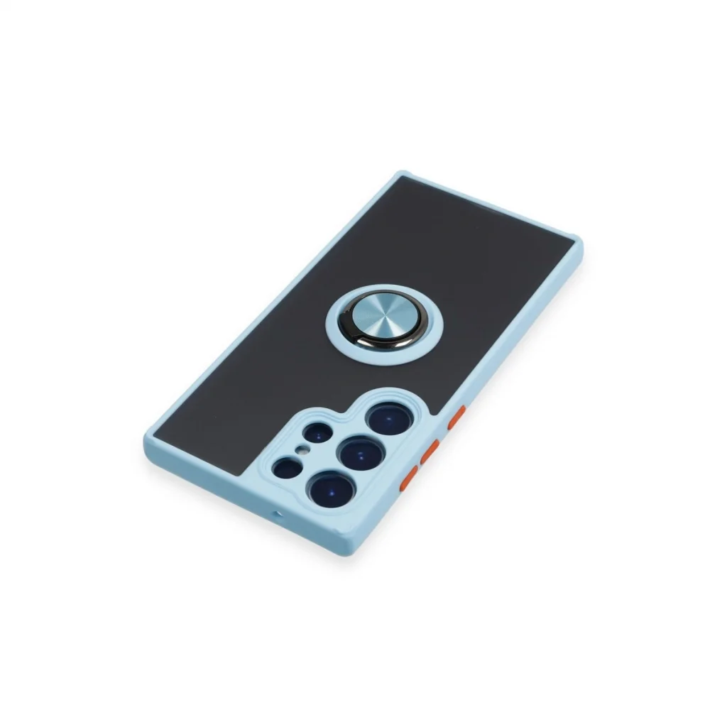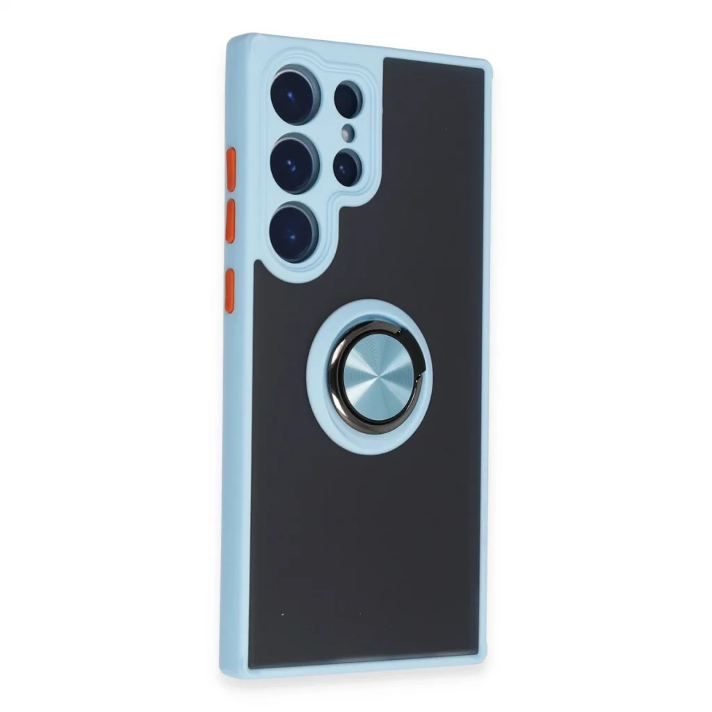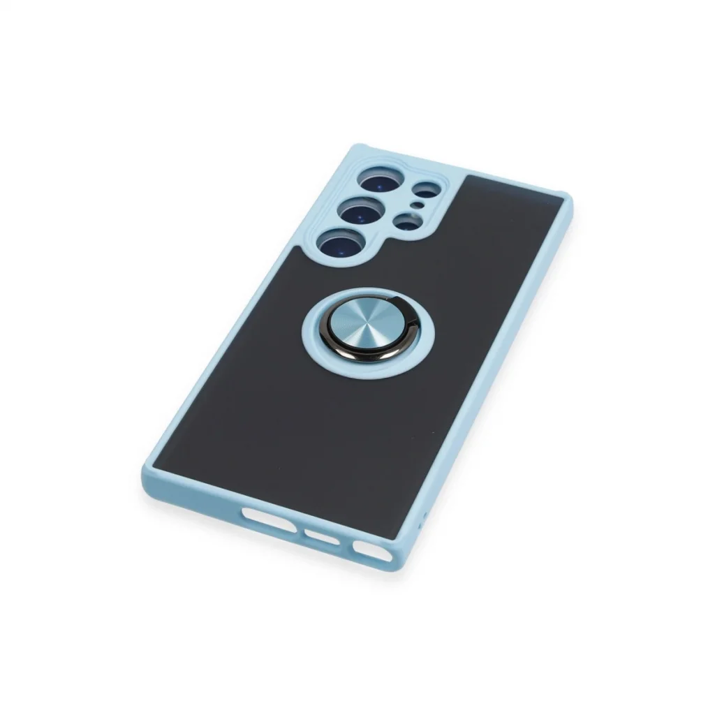 Samsung Galaxy S23 Ultra Kılıf Montreal Yüzüklü Silikon Kapak - Buz Mavi