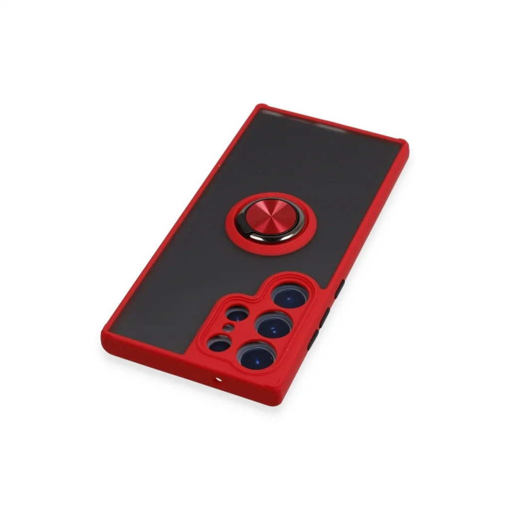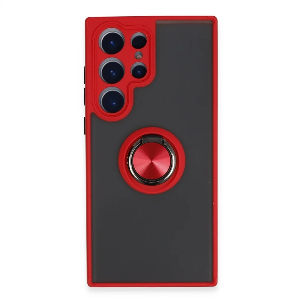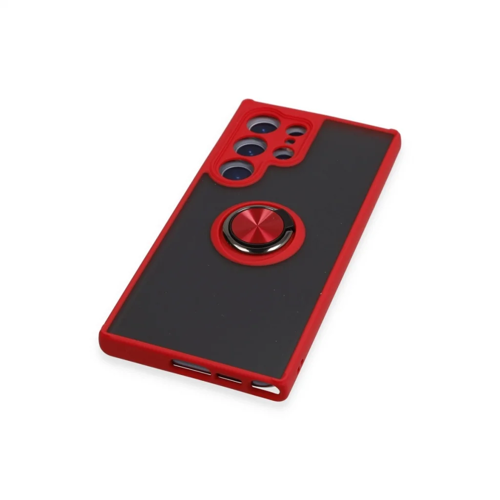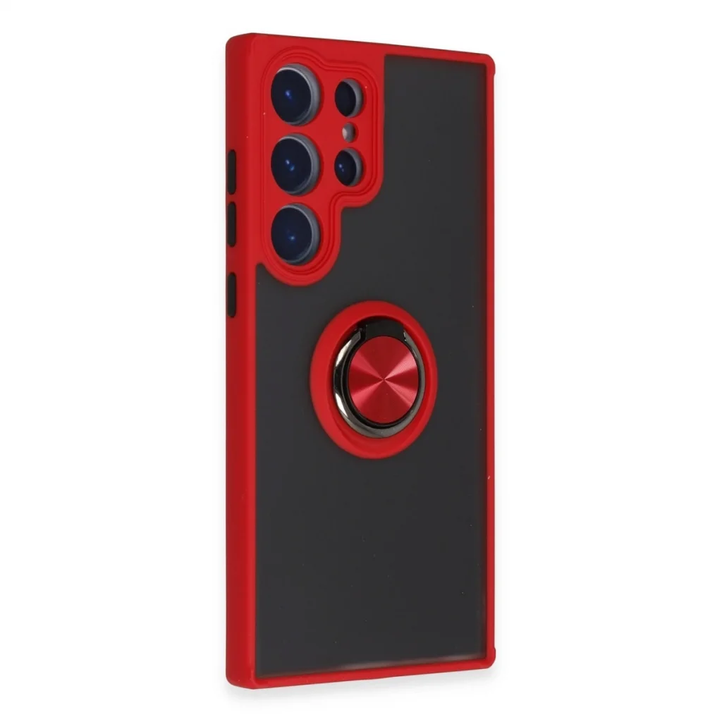 Samsung Galaxy S23 Ultra Kılıf Montreal Yüzüklü Silikon Kapak - Kırmızı