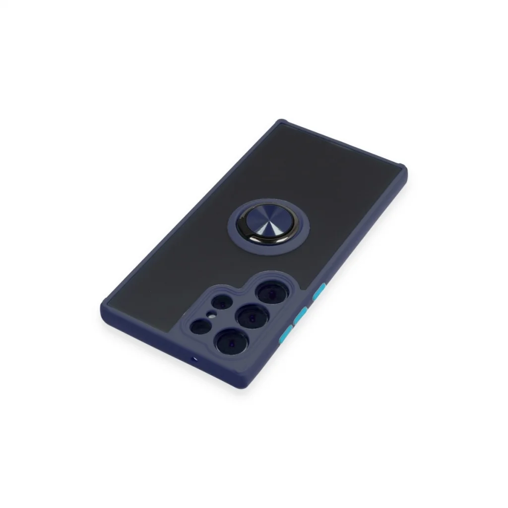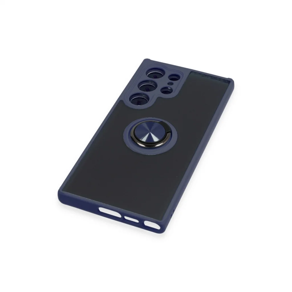 BUĞZ Samsung Galaxy S23 Ultra Kılıf Montreal Yüzüklü Silikon Kapak - Lacivert
