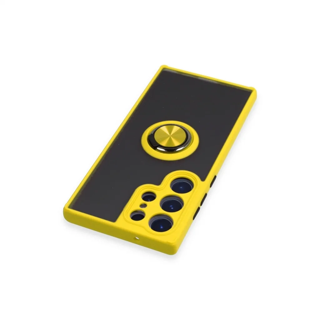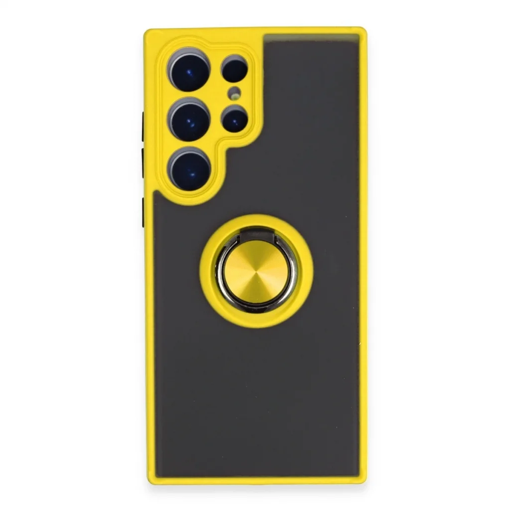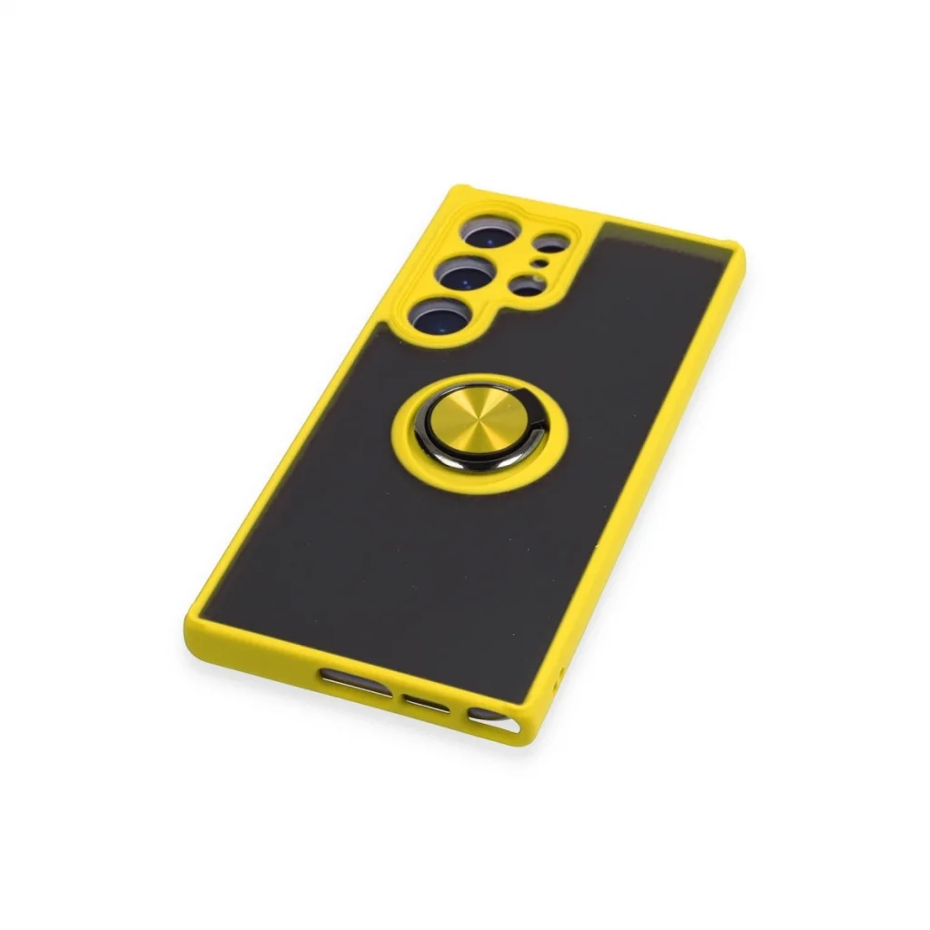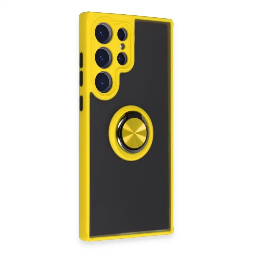 Samsung Galaxy S23 Ultra Kılıf Montreal Yüzüklü Silikon Kapak - Sarı