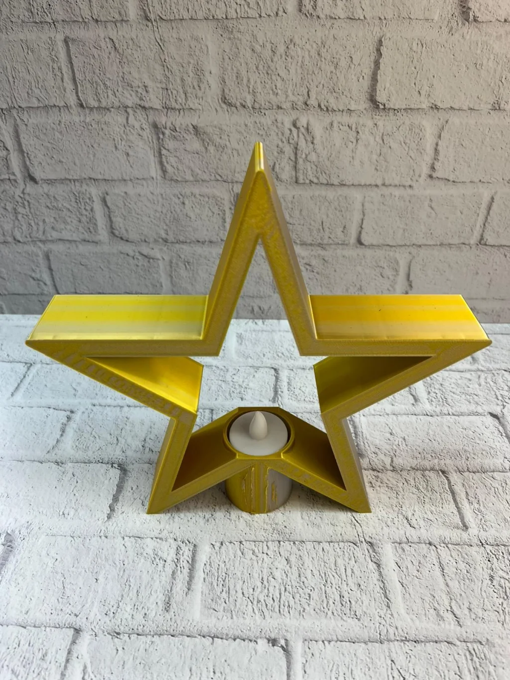 Sarı yıldız mumluk, canlı rengi ve modern tasarımıyla dekorasyona enerjik bir dokunuş katar. 21×23 cm ölçüsü sayesinde raf, masa, şifonyer veya TV ünitesi üzerinde rahatlıkla sergilenebilir. Mum ışığıyla birleştiğinde loş ve sıcak bir atmosfer oluşturarak salon ve oturma alanlarında samimi bir ambiyans yaratır. Hem tek başına hem de diğer dekoratif objelerle birlikte kullanılabilir.Ürün Markası: Lisinya