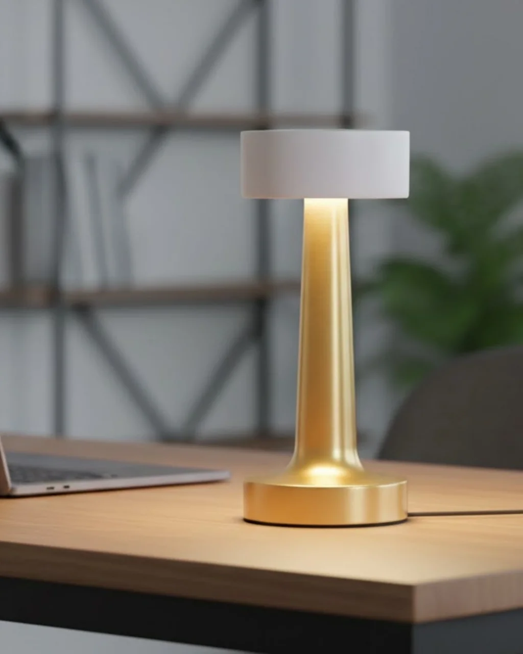 Şarj edilebilir LED masa lambası, taşınabilir yapısı sayesinde evin her alanında kullanılabilir. 3 renk modu ile farklı atmosferler yaratır. Dimmer özelliği ile ışık yoğunluğu ayarlanabilir.Altın gövde tasarımı dekoratif bir görünüm sunar. Kablosuz kullanım avantajı ile pratiklik sağlar.