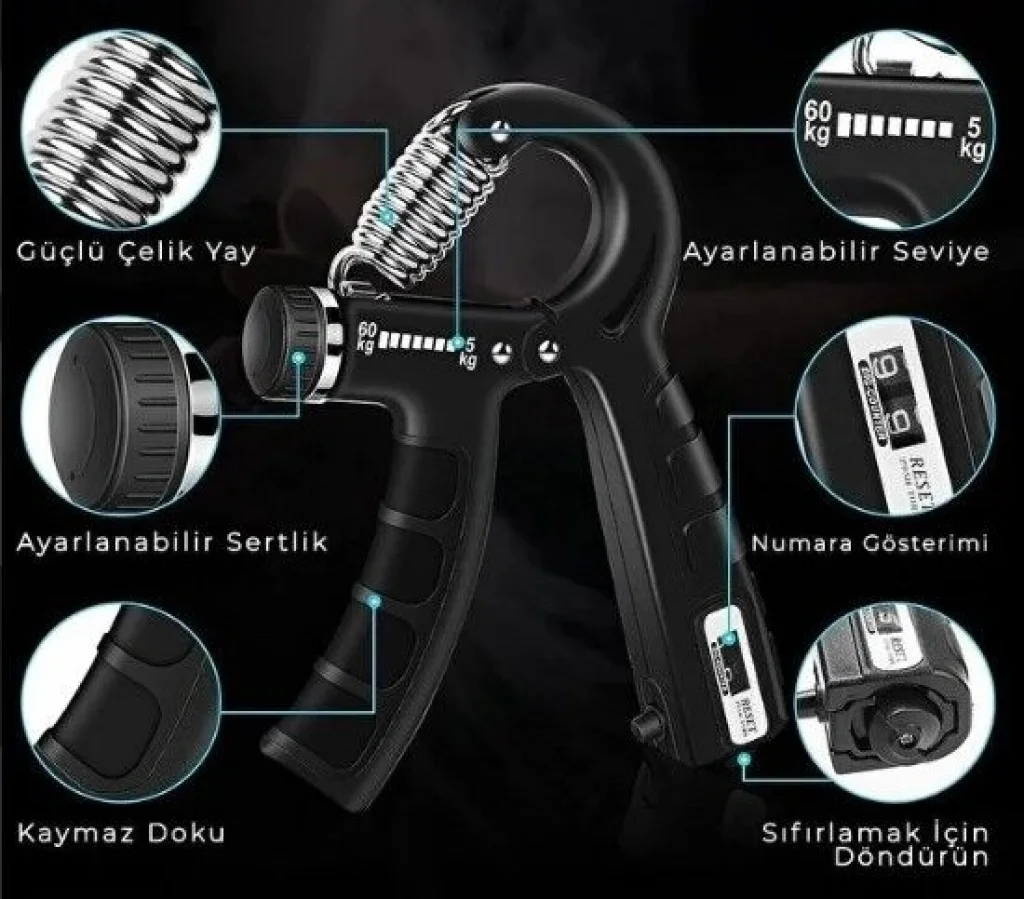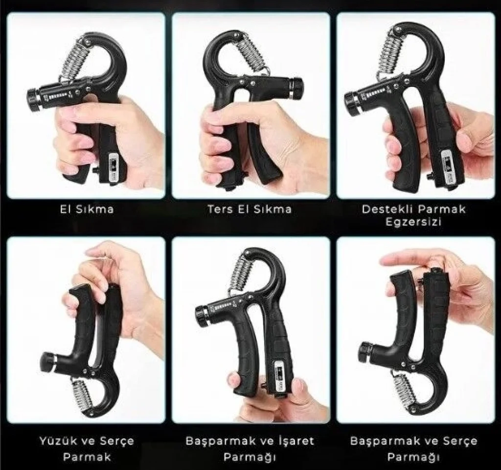 Çok Fonksiyonlu Kullanım: Görsellerde de belirtildiği gibi; normal el sıkma, ters el sıkma, parmak bazlı egzersizler ve başparmak güçlendirme gibi farklı varyasyonlarla tüm el kaslarını çalıştırabilirsiniz.