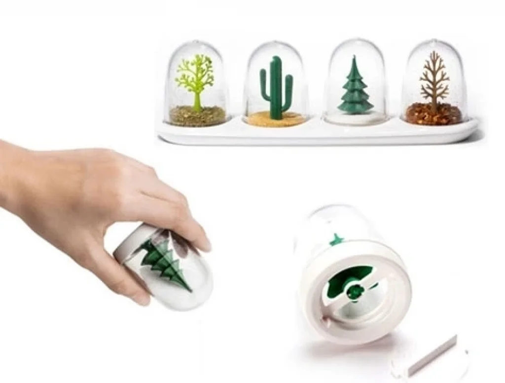 4 mevsimi sofranızda yaşatan harika bir baharatlık. Her birinin içinde uygun mevsime göre ağaç figürleri bulunur ve uygun baharat kullanıldığında gerçekçi bir görüntü elde edilebilir
