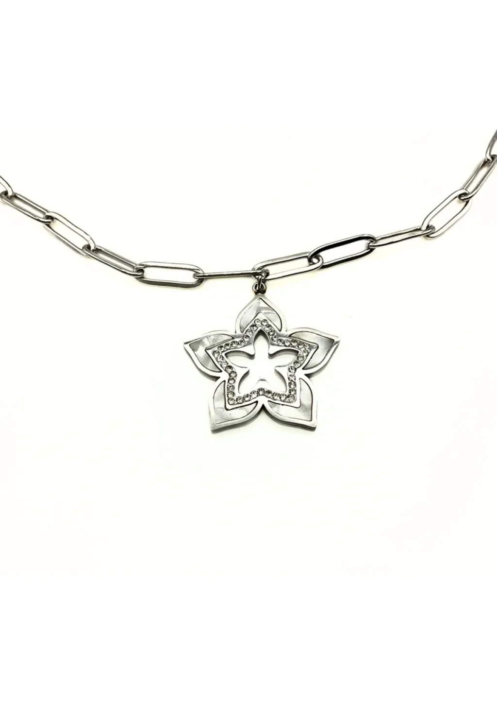 Sedef Detaylı Yıldız Çelik Kolye MODEL 10 | Taşlı Modern Tasarım Zarif detayları ve modern tasarımıyla öne çıkan yıldız figürlü çelik kolye, günlük kombinlerden özel gün şıklığına kadar her stile uyum sağlar. Üç katmanlı özel tasarımı sayesinde kolye, klasik yıldız modellerinden ayrılır: