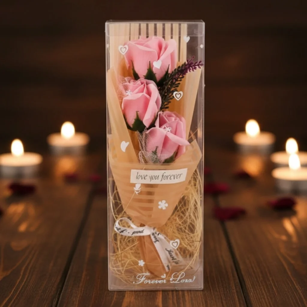 ŞEFFAF KUTULU ÜÇ GÜL BUKETİÜrün ÖzellikleriŞeffaf kutulu üç gül buketi, zarif ve romantik tasarımıyla özel günlerde anlamlı bir hediye alternatifi sunar. Şeffaf koruyucu kutu içerisinde sunulan üçlü gül aranjmanı, hem estetik bir görünüm sağlar hem de ürünün formunu uzun süre korumasına yardımcı olur. Minimal ve şık tasarımı sayesinde masa, komodin ve vitrin dekorasyonunda rahatlıkla sergilenebilir. Üçlü gül buketi tasarımı, sevgi ve zarafeti simgeleyen klasik bir hediye seçeneğidir. Özel günlerde, doğum günü, yıl dönümü veya sürpriz hediyelerde tercih edilebilen şeffaf kutulu gül buketi, dekoratif yapısı ile kalıcı bir hatıra niteliği taşır. Renk seçimi yapılamaz, ürün görseldeki renklerden biri karışık olarak gönderilir. Dekoratif gül aranjmanı, hem romantik hem de şık bir sunum arayanlar için ideal bir tercihtir.Ürün Teknik Özellikleri Özellik Açıklama Ürün Adı Şeffaf Kutulu Üç Gül Buketi Malzeme Dekoratif yapay gül ve şeffaf kutu Renk Görseldeki renklerden biri, karışık gönderim Kullanım Alanı Hediye ve dekoratif süs Paket İçeriği1 adet şeffaf kutulu üç gül buketi (renkler karışık gönderilir)