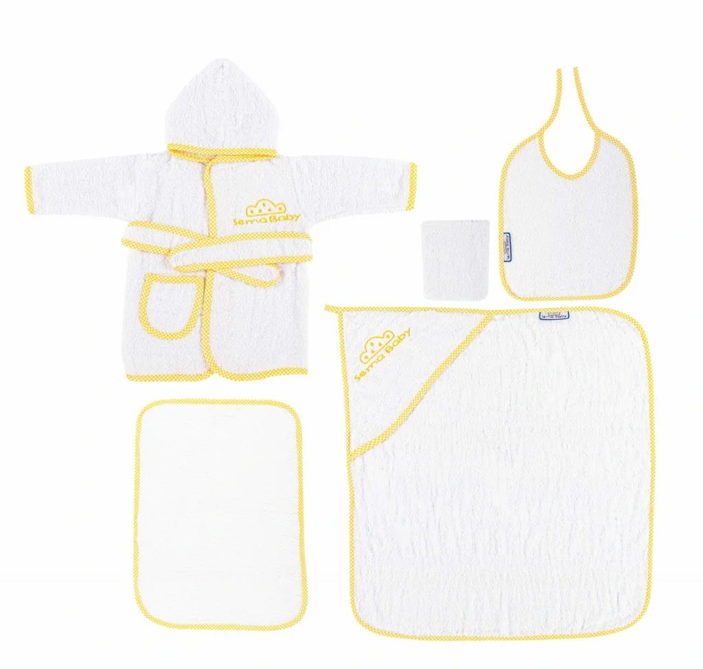 BUĞZ Sema Baby 5 Parça Bebek Bornoz Seti - Sarı