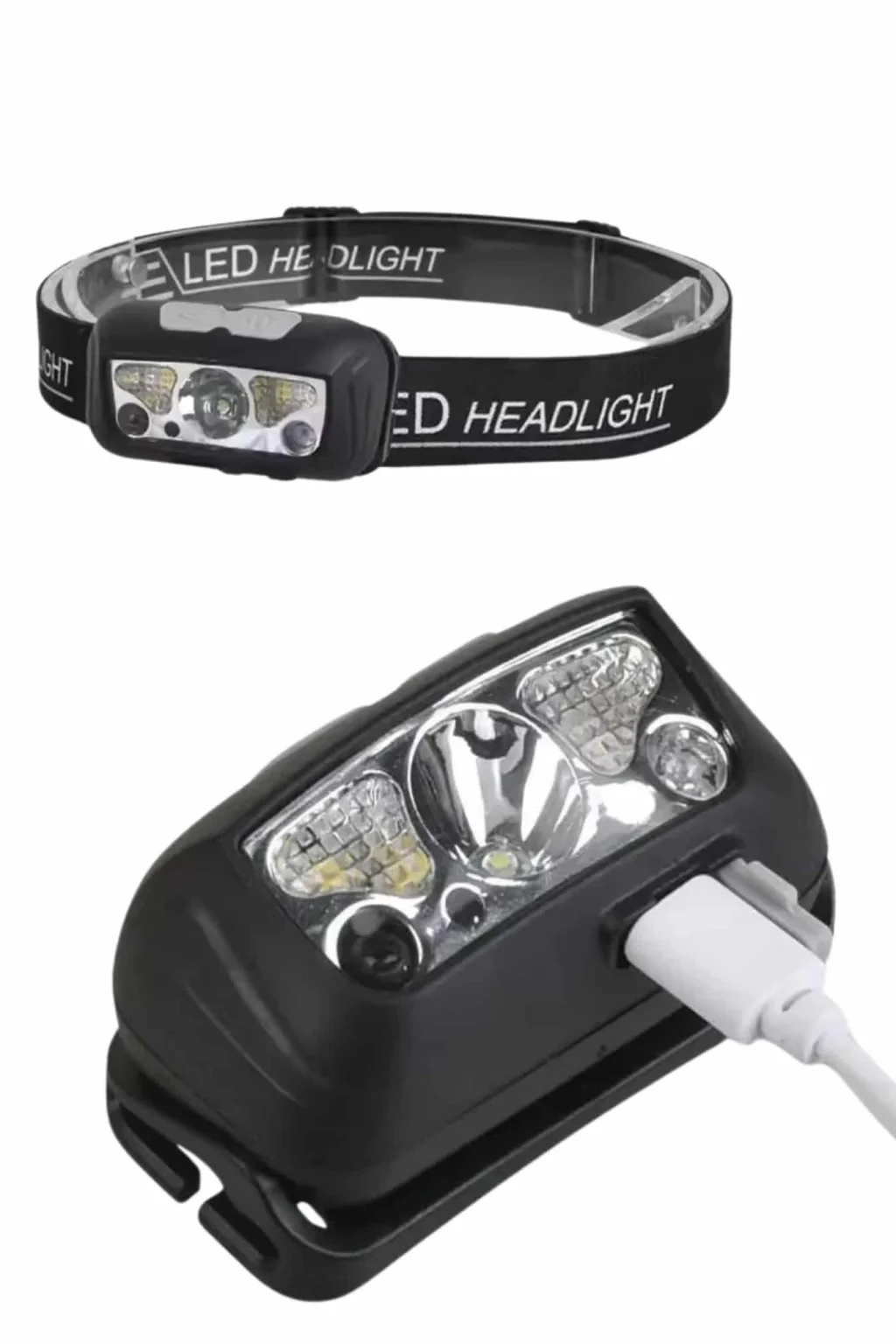 BUĞZ Sensörlü Şarjlı Type-c Şarj Işıklı Kafa Lambası Kamp Lambası
