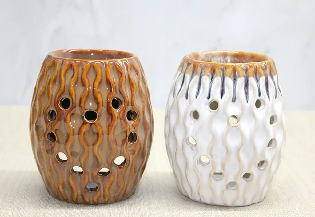 SERAMİK BUHURDANLIK MODEL 2Ürün ÖzellikleriSeramik Buhurdanlık Model 2, dekoratif tasarımı ile aromaterapi deneyimini estetik bir görünümle buluşturan özel bir üründür. 12x10 cm boyutundaki ideal ölçüsü sayesinde ev ve ofis ortamlarında rahatlıkla kullanılabilir. Seramik yüzeyinde yer alan modern delik desenleri, yanan tealight mumun ışığının dışarı yansımasını sağlayarak ortama sıcak ve hoş bir ambiyans oluşturur. Isıya dayanıklı seramik malzemesi uzun ömürlü kullanım sunarken, üst haznesine eklenen esans veya yağların yavaşça ısınarak mekâna hoş bir koku yayılmasına yardımcı olur. Görseldeki renklerden biri gönderilir ve renk seçimi yapılamaz. Şık görünümü ve fonksiyonelliği ile hem günlük kullanım hem de dekoratif amaçlar için ideal bir seçimdir.Paket İçeriği1 adet Seramik Buhurdanlık Model 2
