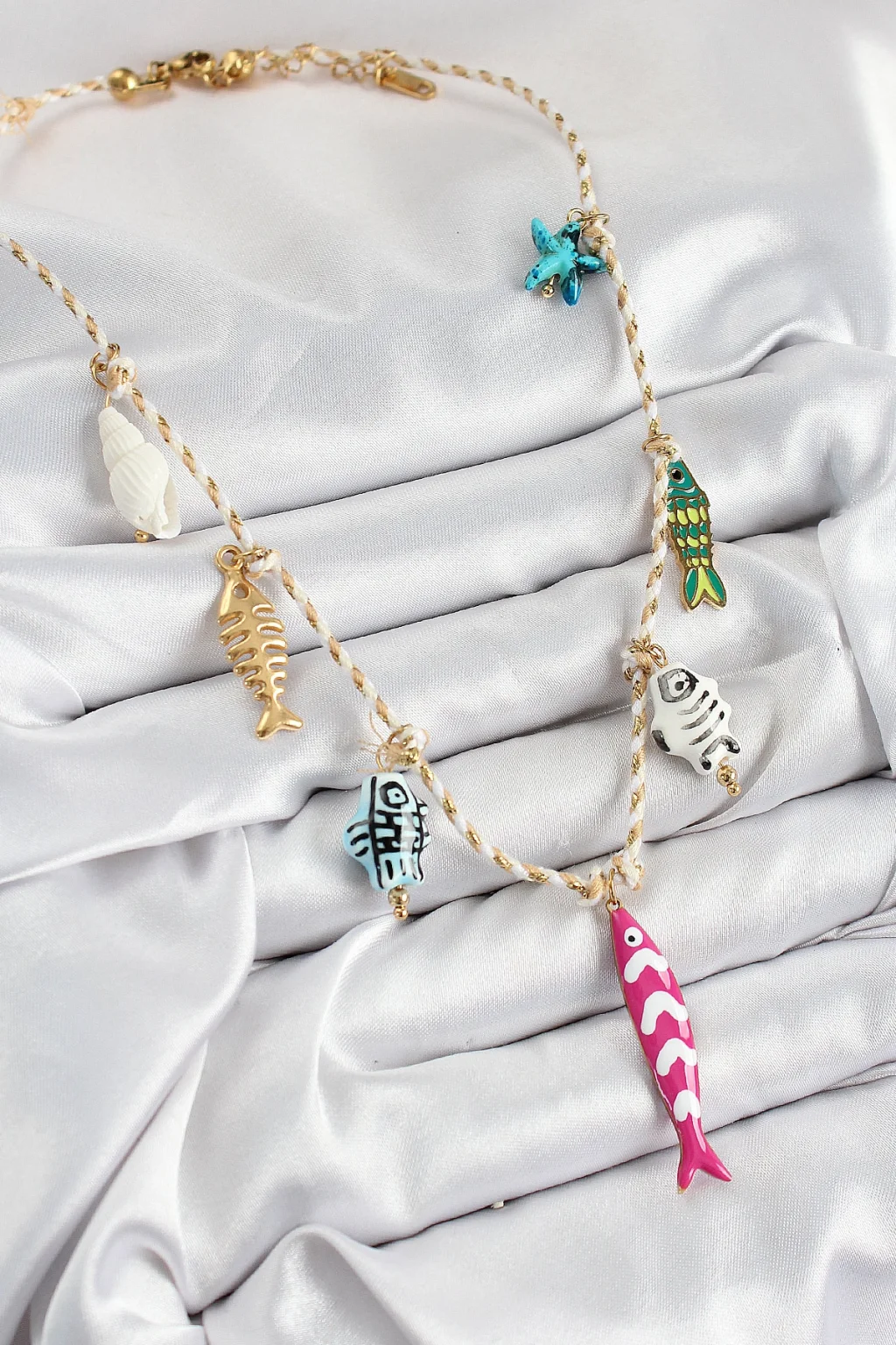 BUĞZ Seramik Motifli Pembe Balık Figürlü Model Krem İp Kadın Kolye - Lisinya