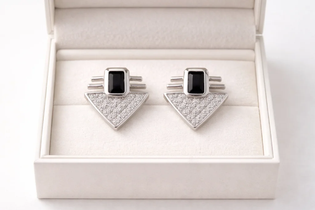 Serenay Küpe MODEL 9 – Siyah Taşlı Geometrik Zirkon Detaylı Gümüş Renk Çelik Küpe, Kararma Yapmaz Modern çizgileri ve güçlü duruşuyla öne çıkan Serenay Küpe, siyah taş detayı ve geometrik tasarımıyla stiline net bir karakter kazandırır. Gümüş renk kaplaması ve ışıltılı zirkon taşları sayesinde sade kombinleri bile anında şık hale getirir. Paslanmaz çelik materyalden üretilmiştir; kararma, solma ve renk atma yapmaz. Alerji dostu yapısı sayesinde hassas kulaklarda güvenle kullanılabilir. Günlük kullanım için zarif, özel günlerde ise dikkat çekici bir tamamlayıcıdır. Minimal ama iddialı takıları sevenler için ideal bir seçimdir. ?? Serenay Küpe Özellikleri